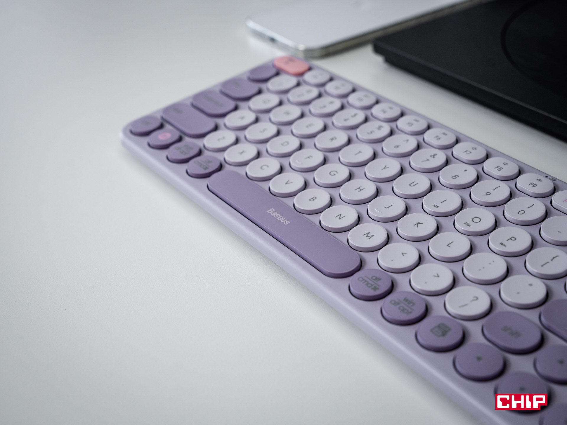 Tyle o technicznej stronie rzeczy – wypada jednak zwrócić uwagę także na wzornictwo. Klawiatury K01A i K01B są po prostu ładne – obudowa jest ergonomicznie pochylona pod kątem 6,4°, okrągłe lub zaokrąglone przyciski z profilowaniem pod palce i eleganckie kolory nie tylko dobrze wyglądają, ale też są wygodne, a dzięki interesującej kolorystyce klawiatury już z daleka zwracają uwagę. A jakby tego było mało – zakup którejś z nich z pewnością nie nadwyręży naszej kieszeni, producent wycenia je bowiem na ~140 zł, a w praktyce da się je kupić nawet taniej. Model Baseus K01A znajdziecie tutaj.