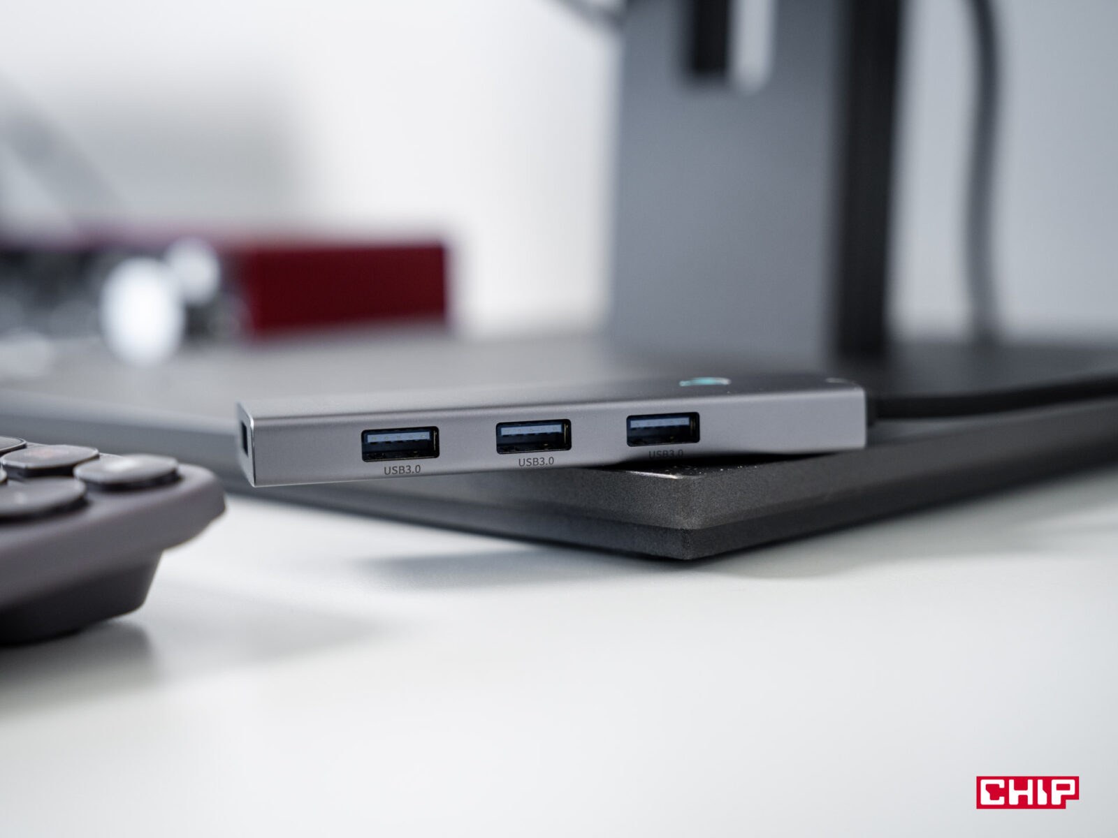 Problem braku dostatecznej liczby portów znam z własnego doświadczenia. Co prawda osobiście pracuję przede wszystkim na doskonale pod tym względem wyposażonej maszynie stacjonarnej, ale żona korzysta z laptopa i dodatkowego monitora. Do dyspozycji ma 2 porty USB-C, jeden USB-A i HDMI i bezużyteczny dla nas czytnik kart microSDXC. Gniazdo monitora rozplanowane zostało fatalnie – gruby kabel sygnałowy plątał się po podkładce na mysz, zaraz obok podłączane było zasilanie przez USB-C.