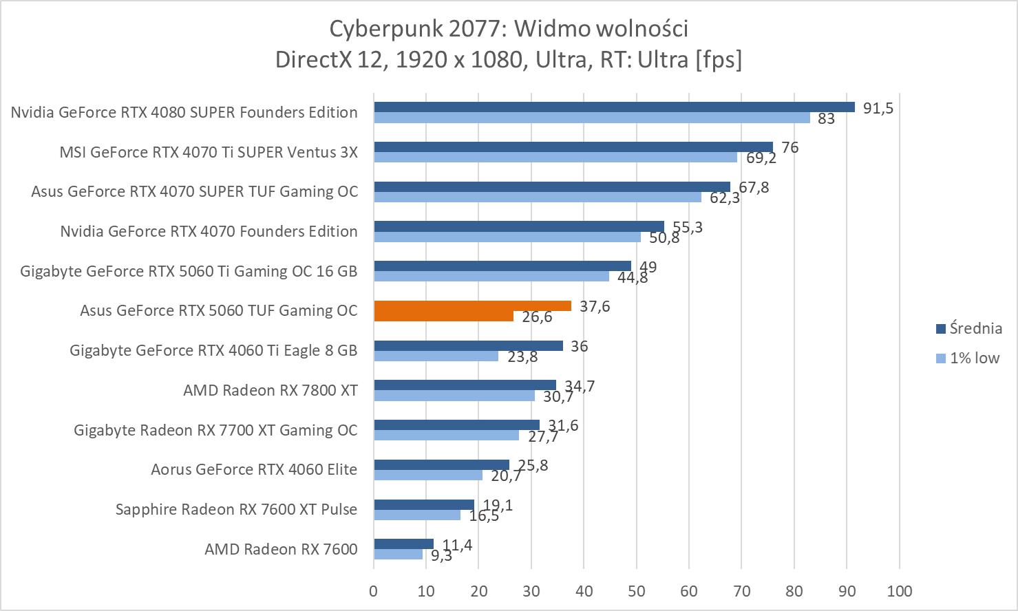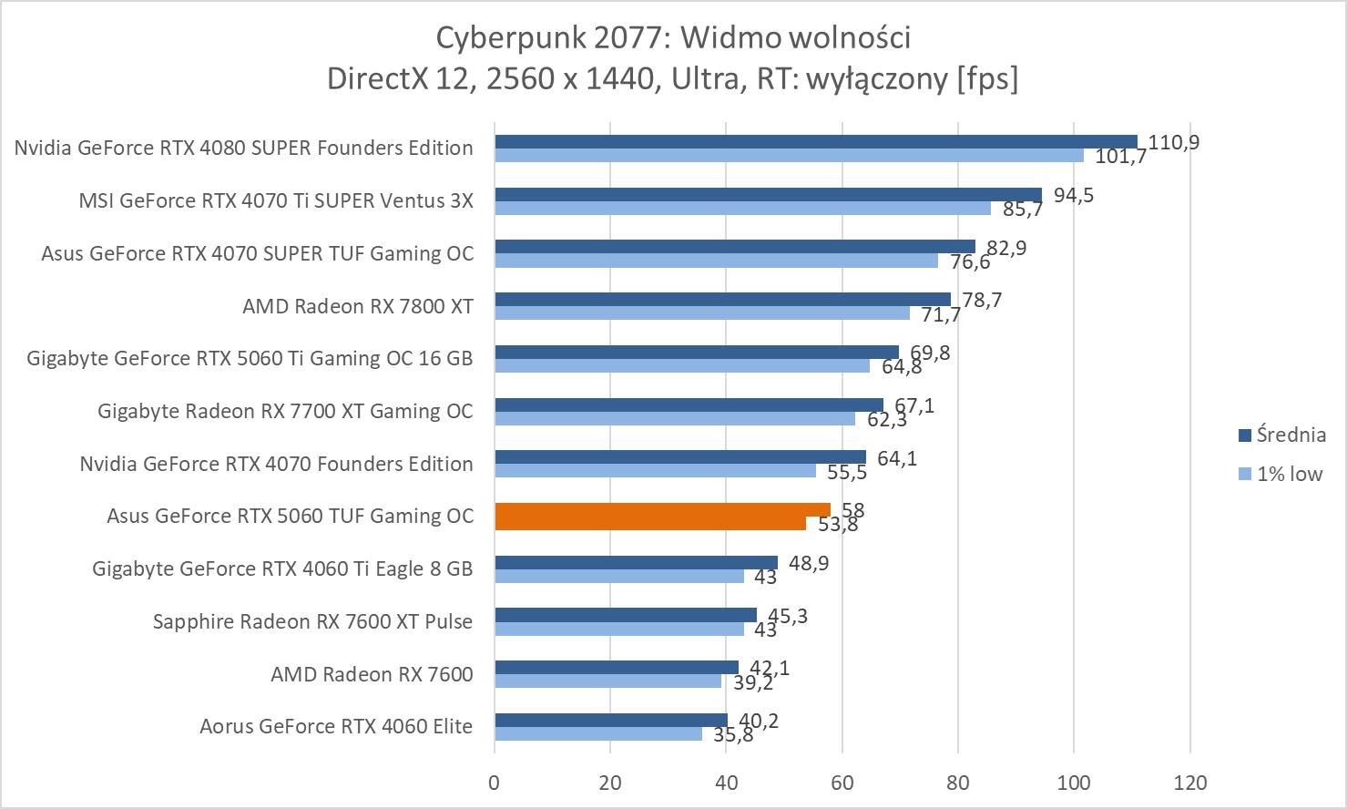Czytaj też: Test Asus GeForce RTX 5060 Ti TUF Gaming OC 16 GB