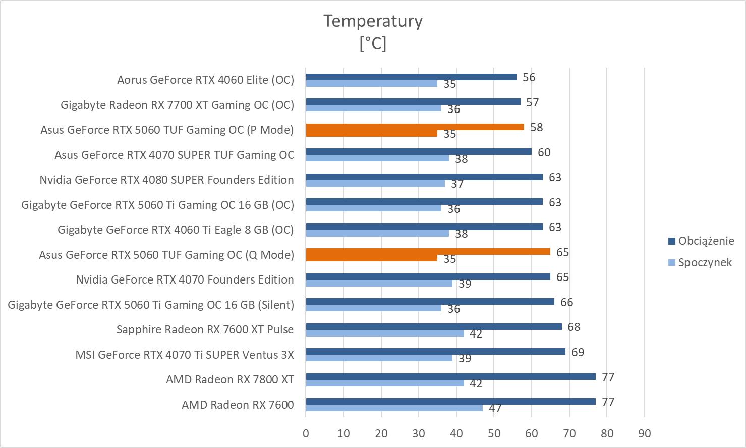 Różnica w temperaturach jest spora. Przy trybie P jest naprawdę niska, ale przy trybie Q nadal pozostaje na naprawdę niezłym poziomie.