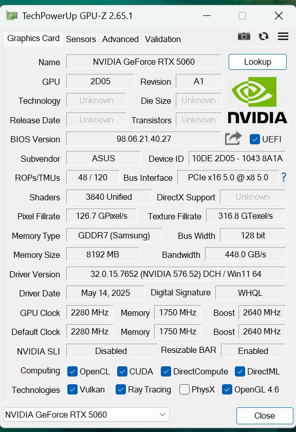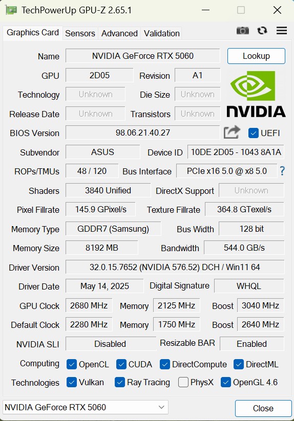 - Nvidia GeForce RTX 5060: Game Ready 576.52