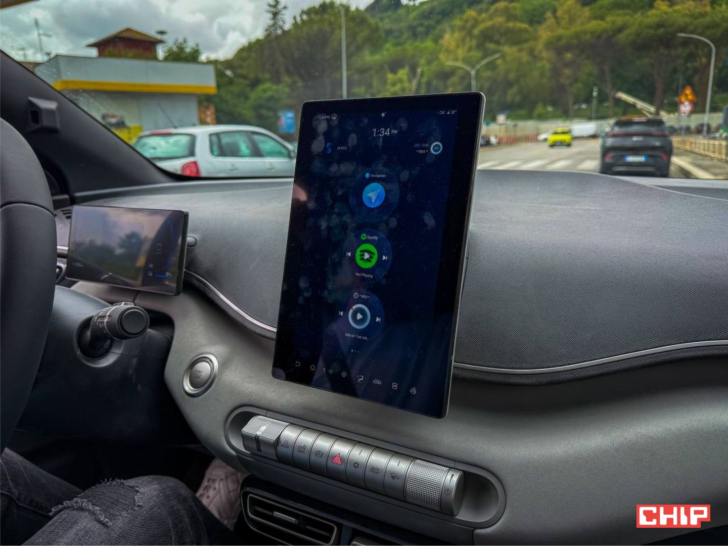 Co do samego systemu samochodu mam… dość mieszane uczucia. Jest, i jest naprawdę niezły — wbudowana nawigacja to Google Maps, co jest sporym plusem w Europie, a do tego jest intuicyjny, dzięki czemu łatwo się po nim porusza. Z drugiej jednak strony czuć od niego zapach taniego tabletu z Androidem (bo właściwie to chyba tym on właśnie jest), a i sama jakość wyświetlacza nie powala; nie jest to okrągły OLED z MINI.
