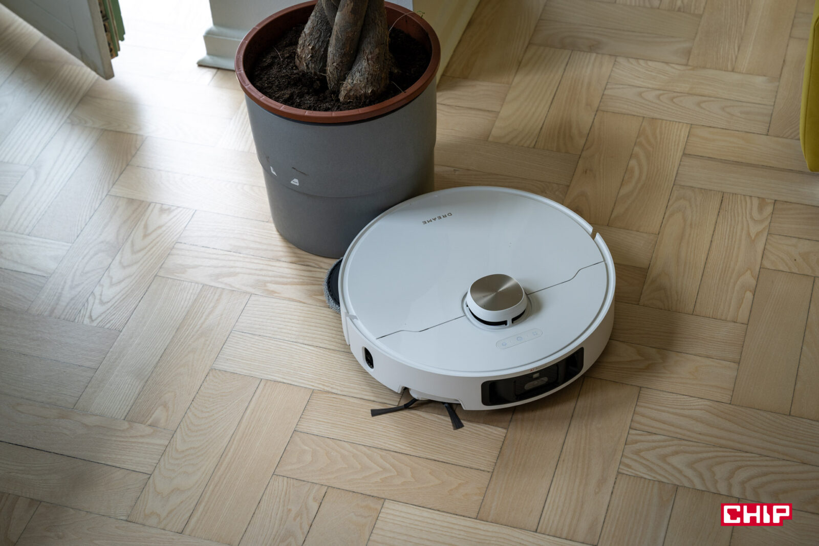 W codziennej eksploatacji największą zmorą robotów bywają długie włosy, które owijają się na wałku szczotki. Dreame odpowiada na ten problem systemem HyperStream Detangling DuoBrush: dwa przeciwbieżne wałki przekazują włosy do kanału ssącego, zanim zdążą się zaplątać. Według danych producenta rozwiązanie radzi sobie z pasmami o długości do 30 cm. Po kilku sesjach sprzątania w biurze, w którym kręcą się osoby z długimi włosami, wałki rzeczywiście pozostawały czyste, więc czynność czyszczenia szczotki można wykreślić z cotygodniowej listy obowiązków.