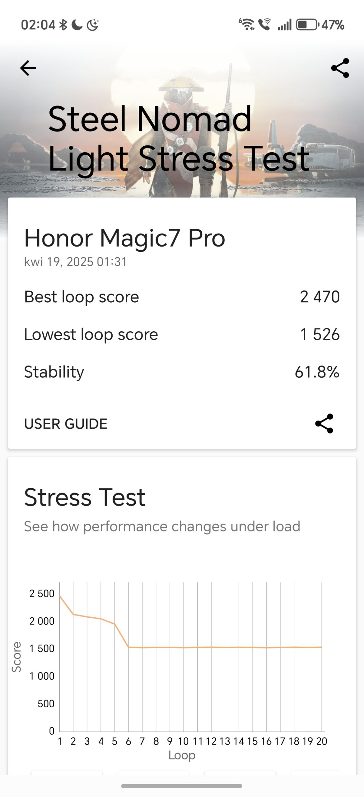 - Steel Nomad Light Stress: 2470/1526, stabilność 61,8%