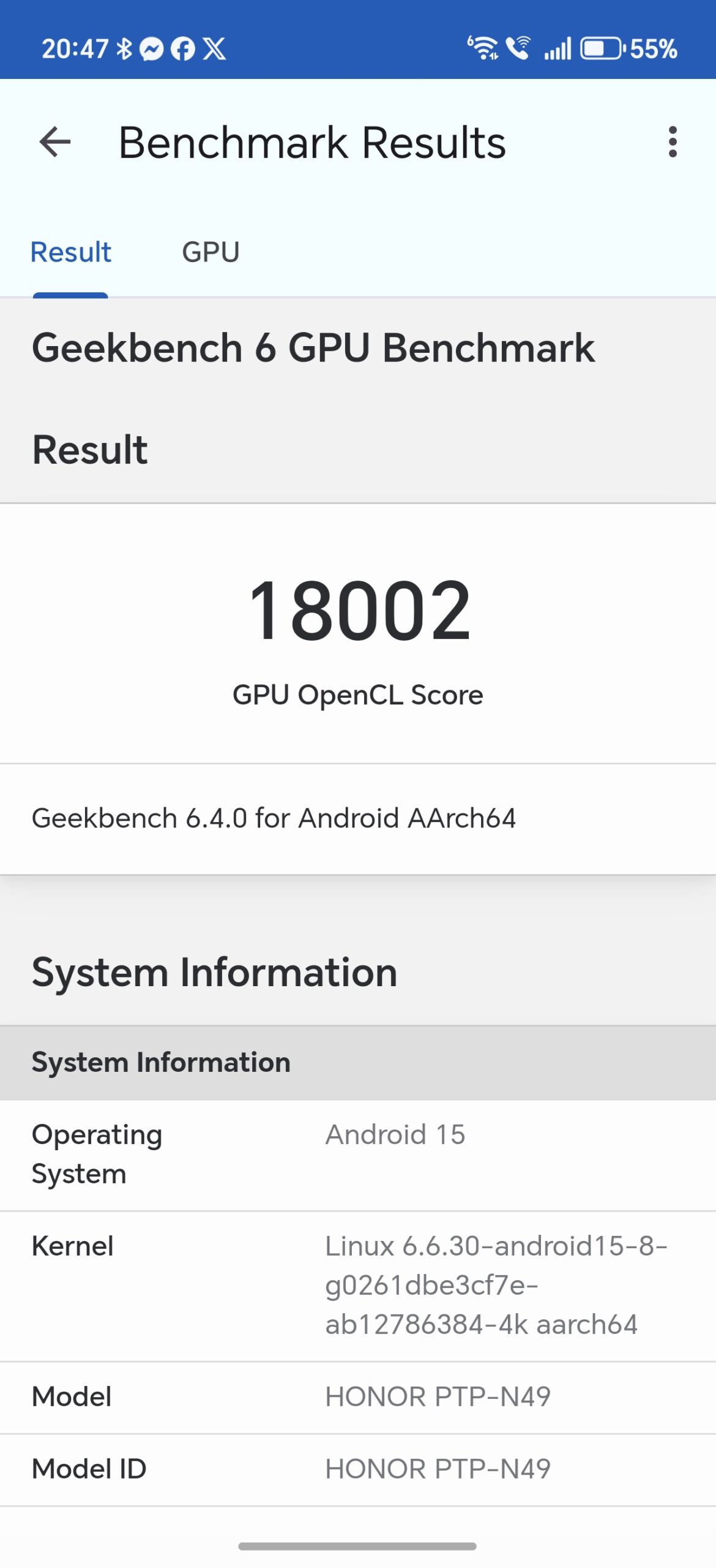 - Geekbench 6 GPU OpenCL: 18002 pkt