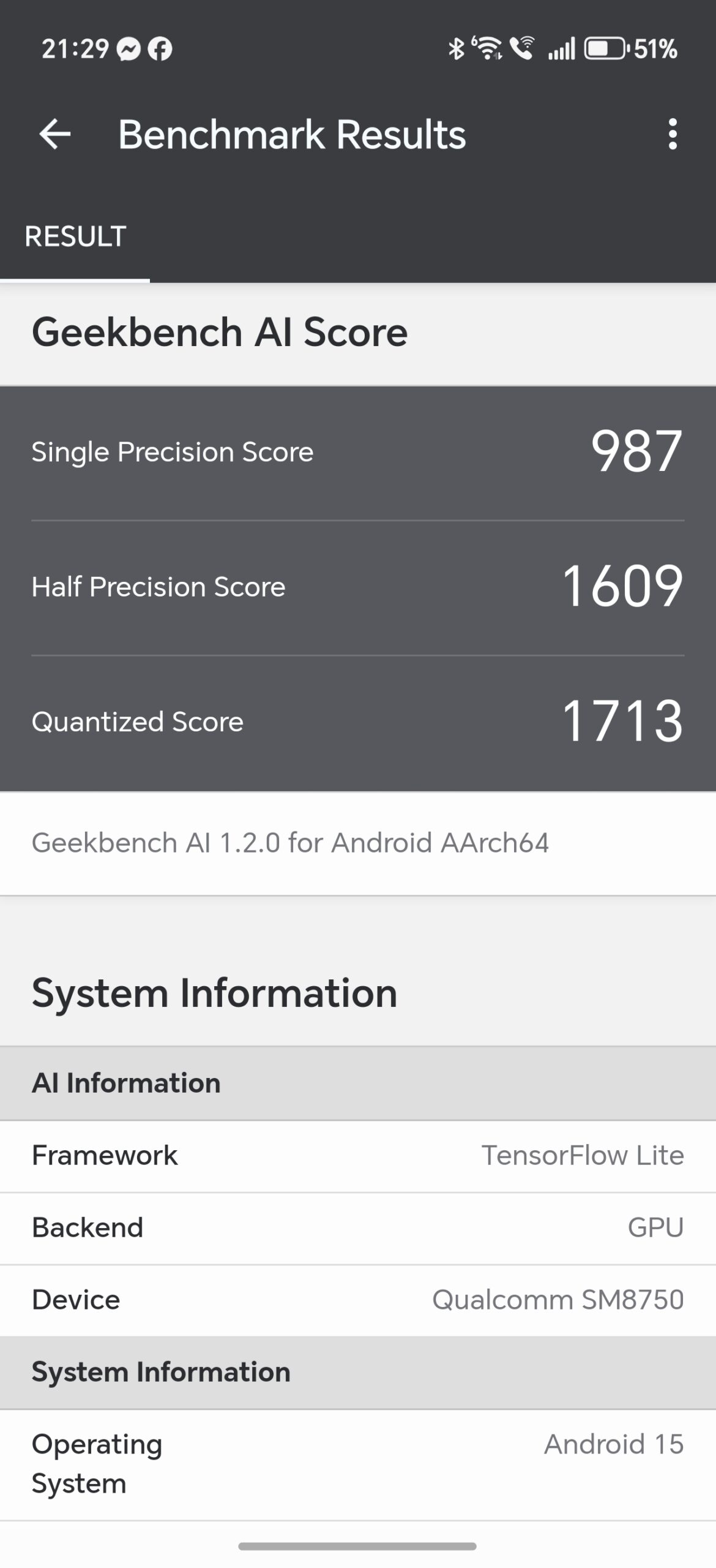 - Geekbench AI GPU: 987 / 1609 / 1713 pkt