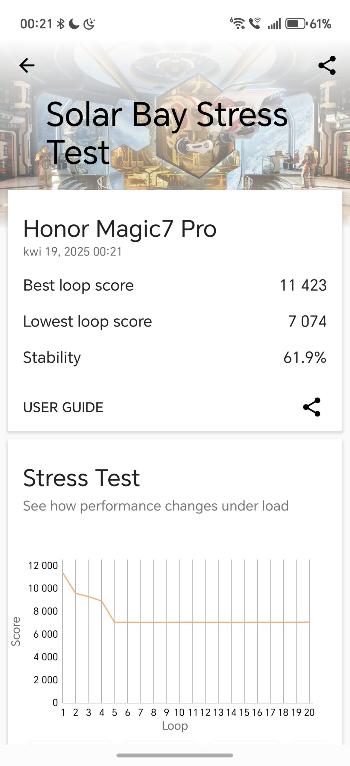 Snapdragon 8 Elite i 12 GB RAM to nie jest recepta na słaby sprzęt – i wyniki benchmarków to potwierdzają. Honor Magic7 Pro osiąga doskonałe wyniki, choć konkurencja z tym samym SoC potrafi wykręcić jeszcze więcej. Oczywiście ewentualne różnice zupełnie nie wpływają na pracę w warunkach rzeczywistych – jest szybko i jedynie przy dłuższym obciążeniu daje o sobie znać problem z odprowadzeniem ciepła z wnętrza obudowy.