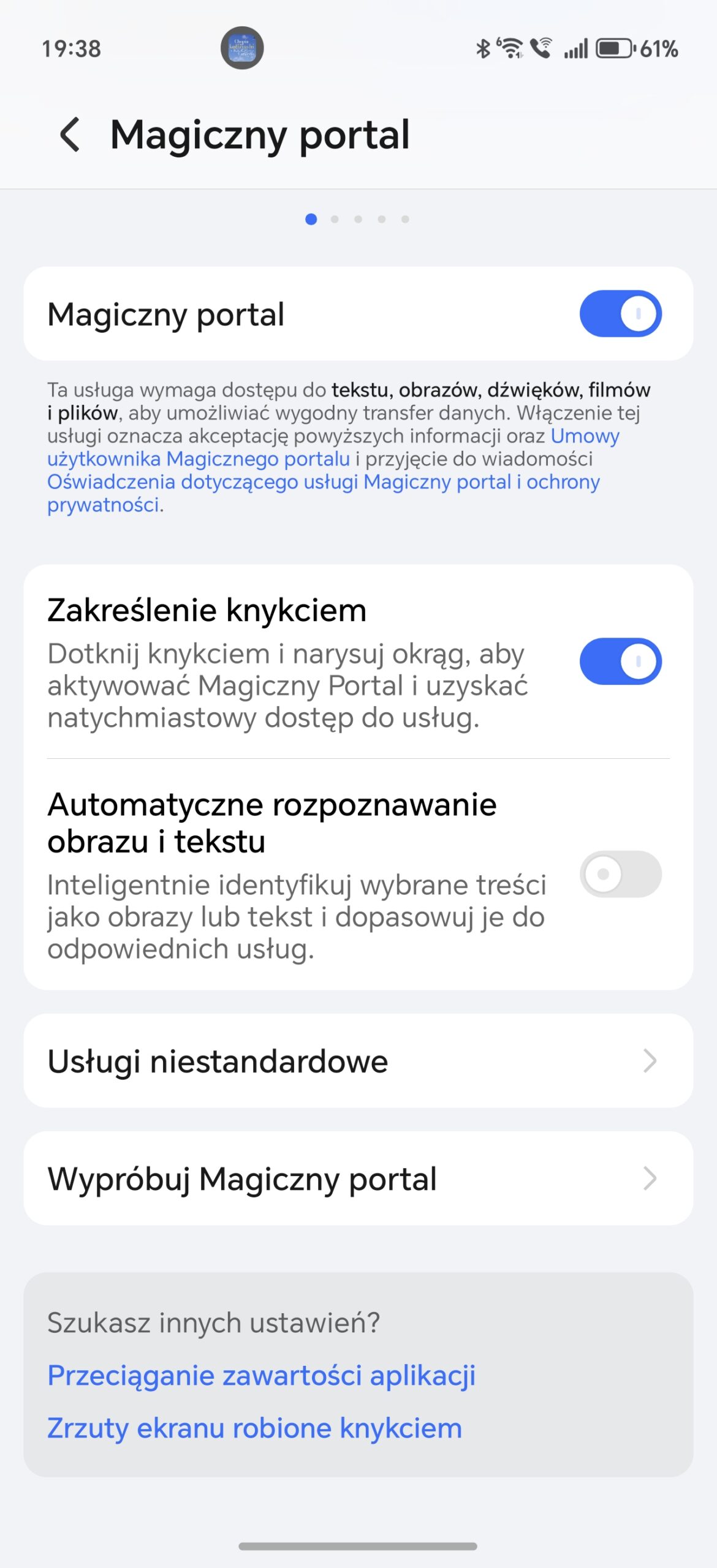W oprogramowaniu oczywiście nie zabrakło funkcji AI – są tłumaczenia na żywo (brak języka polskiego jednak), Gemini, zakreślanie, by wyszukać obraz, wyodrębnianie tekstu z obrazu. Interesująco wygląda Magiczny Portal, dzięki któremu można zakreślić knykciem obiekt na ekranie i system spróbuje rozpoznać, z czym ma do czynienia i zaproponuje opcje z tym związane – udostępnienie, uruchomienie odpowiedniej aplikacji i tak dalej.