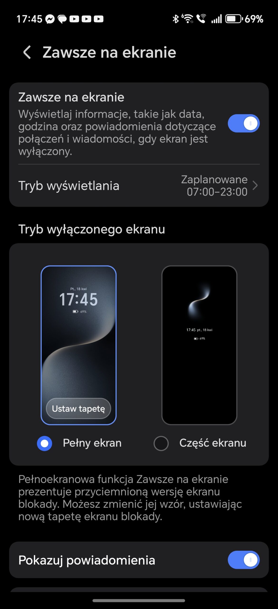 Nie zabrakło w Honor Magic7 Pro allways-on display. Zestaw opcji z tym związanych jest dość typowy, AoD może działać ciągle, w wyznaczonych godzinach, lub aktywować się po nadejściu powiadomienia. Jest to jednak pierwszy smartfon z Androidem, jaki znam, który wzorem iPhone’a Pro w trybie AoD może wyświetlać także tapetę. Zdania co do tego są podzielone, mi się to jednak podoba.