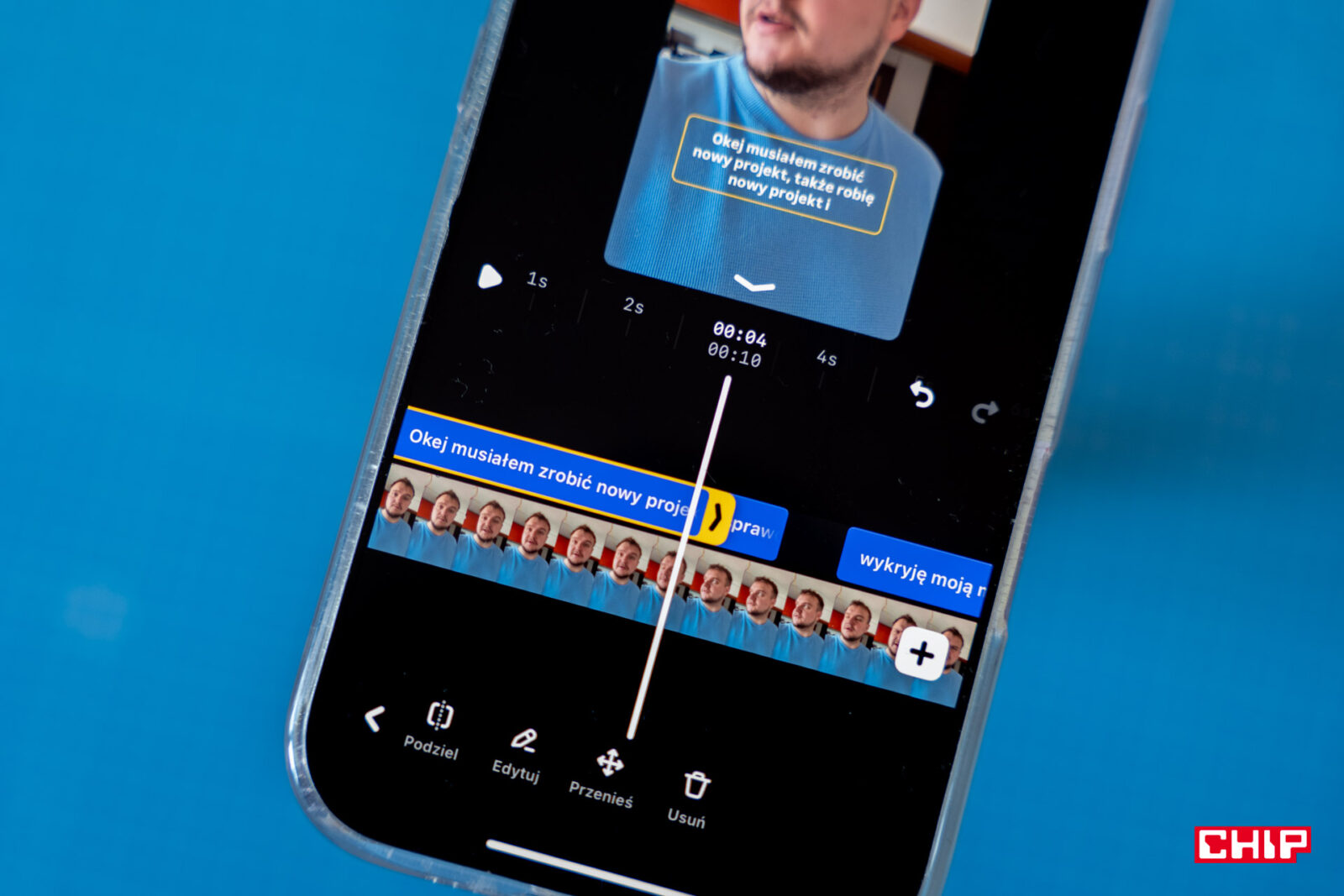 Po nagraniu naszego wideo bądź wykorzystaniu materiałów z naszego smartfonu, przechodzimy do montażu. Tu nie ma wielkich zaskoczeń – aplikacja Edits korzysta z interfejsu bardzo podobnego do tego, co znamy z Capcuta, ale i każdego mobilnego narzędzia do edycji. Przesuwając w lewo i prawo przemieszczamy się po osi czasu, a inne ustawienia pokażą się nam po kliknięciu wybranego przez nas klipu. Nakładanie wideo czy dźwięku może odbyć się poprzez wykorzystanie funkcji nakładka, która rozszerza oś czasu o kolejne ścieżki.