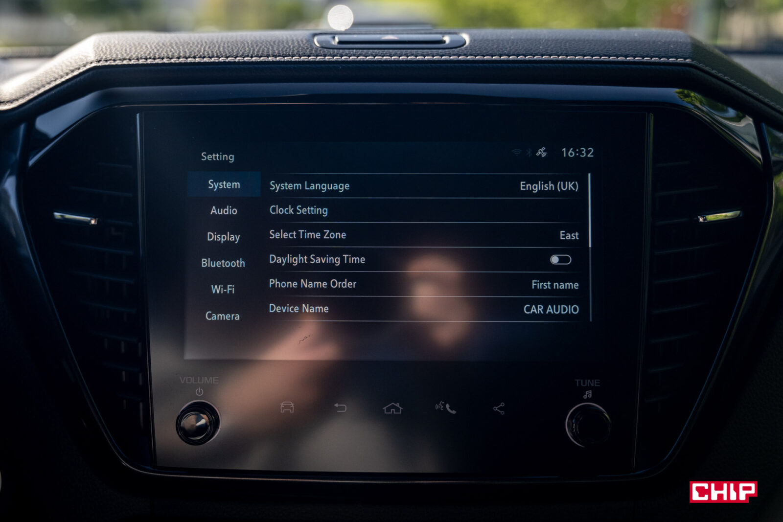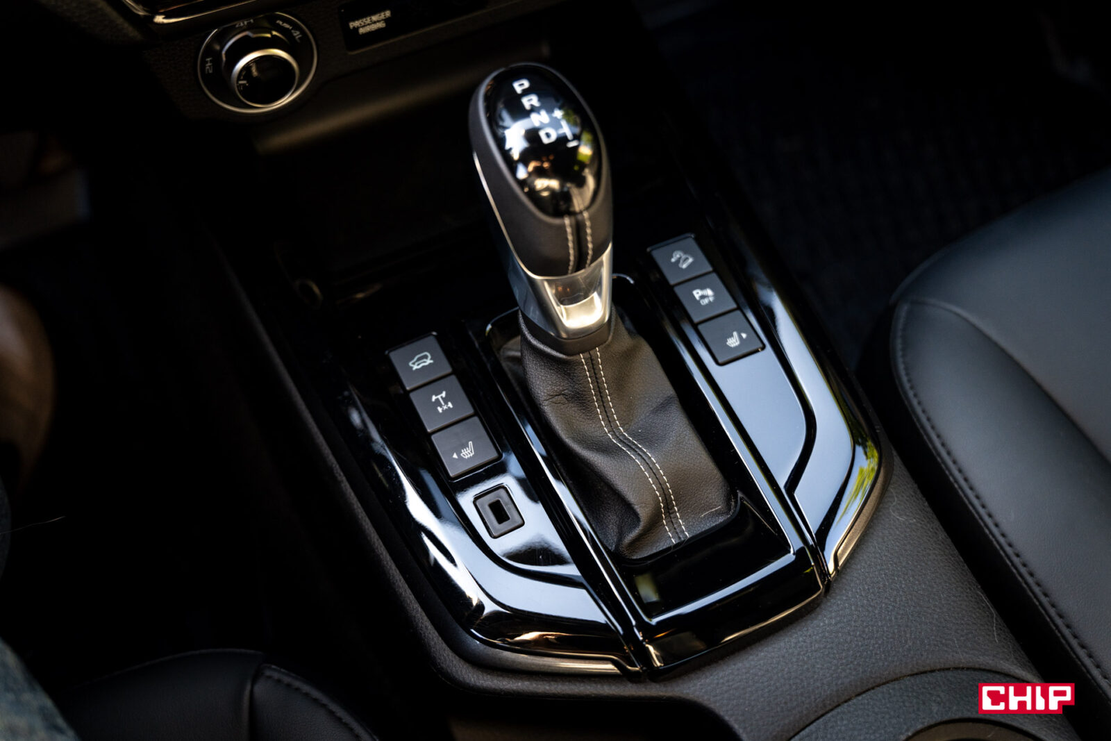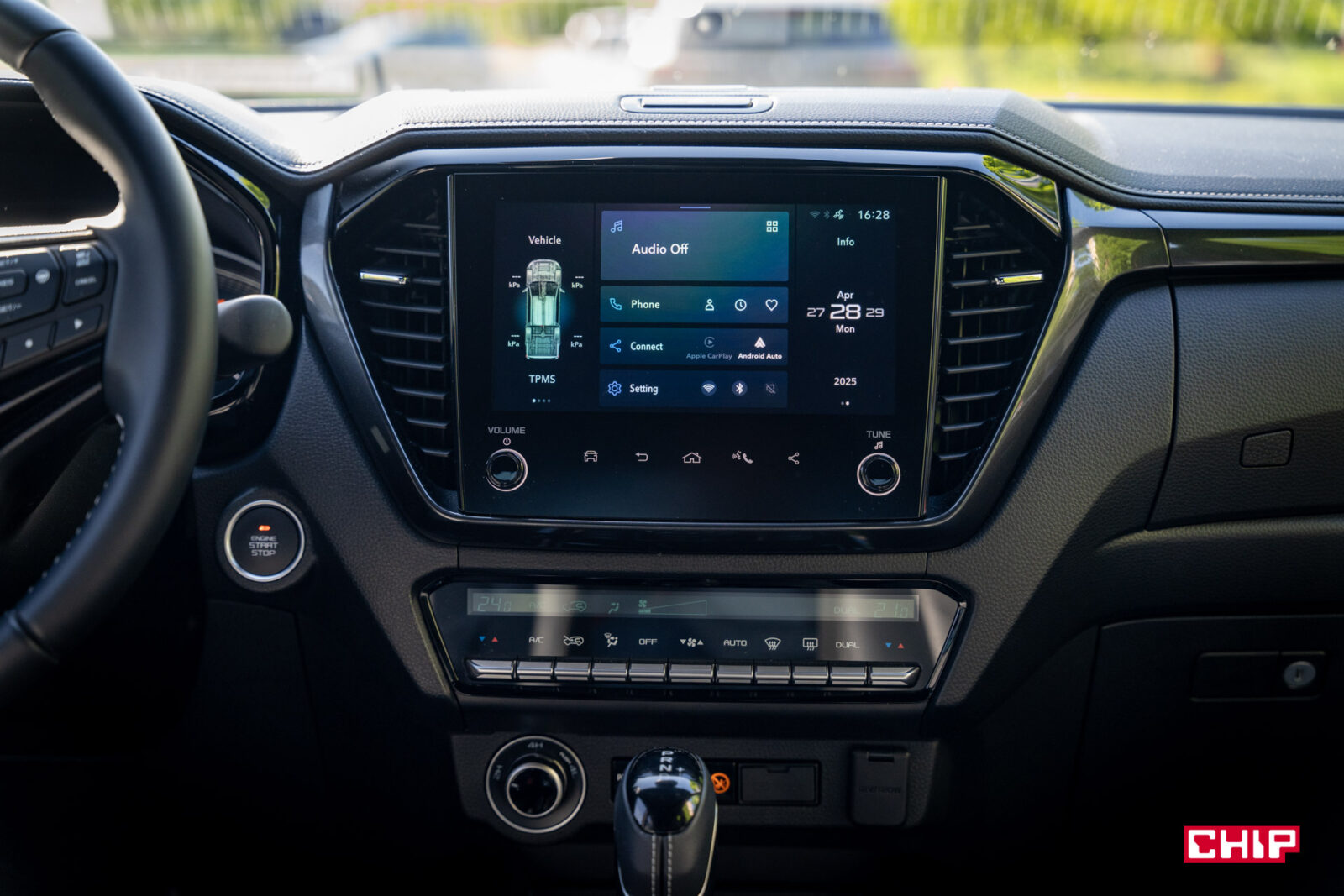 Ekran główny ma przekątną 9 cali i nie grzeszy jakością obrazu, ani jasnością. Nie ma za to problemów z reakcją na dotyk i szybkością działania. W zasadzie jedyną poważniejszą wadą jest tu brak języka polskiego. Interfejs wygląda mocno niewspółcześnie, ale jest prosty i intuicyjny. Duży plus należy się za szybki dostęp do Menu działania asystentów, gdzie w prosty sposób jednym kliknięciem można wyłączyć asystenta prędkości. Inaczej, choćby w terenie gdzie może uznać, że jest ograniczenie do 20 km/h, będzie Wam wyć. W równie prosty sposób, tylko to już przyciskiem przy skrzyni biegów, wyłączamy czujniki parkowania. Oczywiście na miejscu jest obsługa Apple CarPlay i Android Auto, jak najbardziej po kablu.