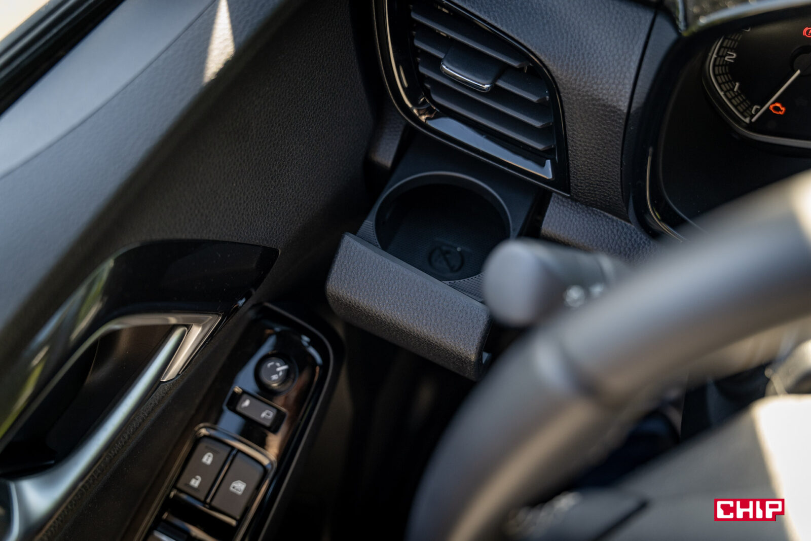 Praktyczność tego wnętrza to również schowki. Dwa po stronie pasażera, do tego dwa uchwyty na napoje na tunelu środkowym oraz dwa na desce rozdzielczej. Ciekawie umieszczone, bo idealnie pod bocznymi nawiewami, więc latem mamy tu od razu, nie do końca wiem czy zamierzoną, funkcję chłodzenia. I nie trzeba płacić co najmniej cztery razy więcej za doposażonego Mercedesa GLE czy BMW X5.