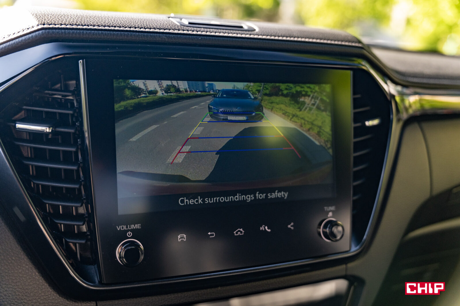 Zaskakująco dobrze wypada za to kamera cofania. Obraz jest bardzo przyzwoitej jakości, szeroki, ale nie zniekształcający perspektywy ze sprawnie działającymi, dynamicznymi liniami. Tego raczej mało kto się spodziewał.