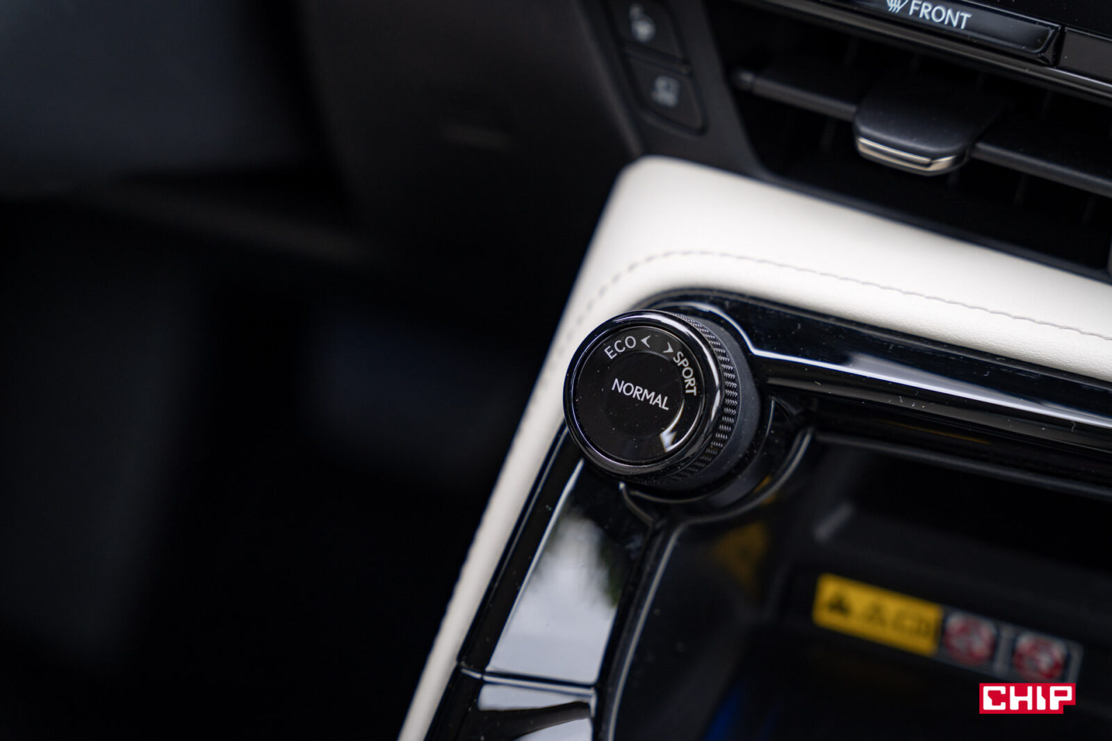Tryb oszczędzania prądu nie sprawia, że NX w ogóle z niego nie korzysta, po prostu wtedy zachowuje się bardziej jak klasyczna hybryda. W dalszym ciągu spali mniej niż jego hybrydowy brat (NX 350h), ale będą to wartości zupełnie inne niż w dwóch pozostałych trybach. W mieście spalał nam w ten sposób 5,3 l/100 km, natomiast w trasie podmiejskiej było to 4,8 l/100 km.
