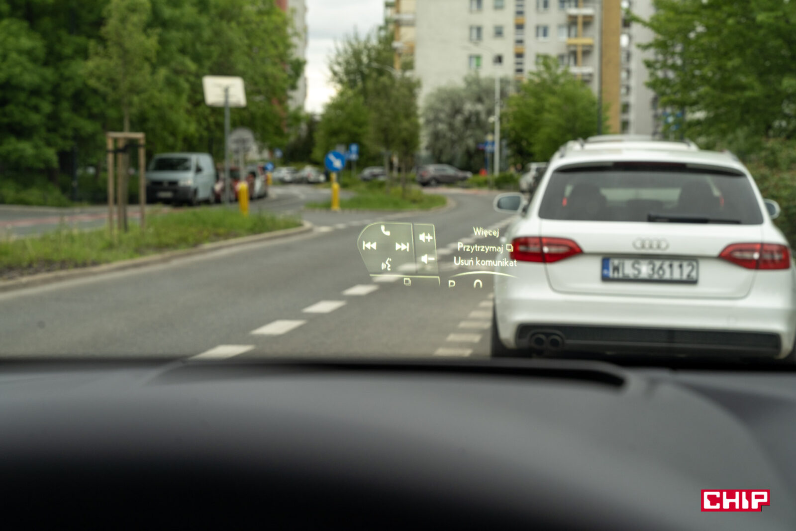 Pochwalić trzeba też ciekawie rozwiązane przyciski na kierownicy. Są one jednocześnie fizyczne i dotykowe, więc ich użytkowanie to kwestia gustu, ale dotyk nie przeszkadza w ich obsłudze. Nie zdarzają się tu przypadkowe wciśnięcia. Jak widzicie na zdjęciach, przyciski D-Padów nie mają oznaczeń, bo mogą pełnić różne funkcje, w zależności od potrzeb, możemy to spersonalizować w Ustawieniach. To, co aktualnie znajduje się pod przyciskami po ich uruchomieniu jest też wyświetlane na head-upie.