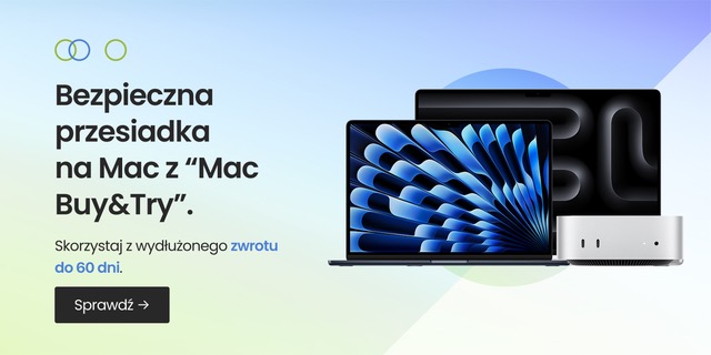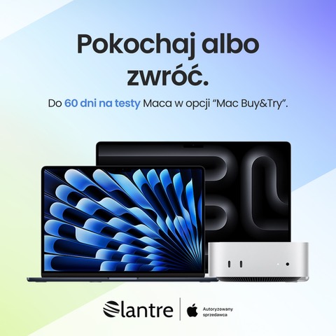 Mac Buy&Try to rozwiązanie, dostępne zarówno w sklepie internetowym Lantre.pl, jak i w salonach stacjonarnych (w warszawskiej Fabryce Norblina oraz w Falentach Nowych) i dotyczy zarówno MacBooków Air czy Pro, jak i komputerów stacjonarnych – Mac mini i Mac Studio. Wszystkie szczegóły dostępne są na stronie Mac Buy&Try.