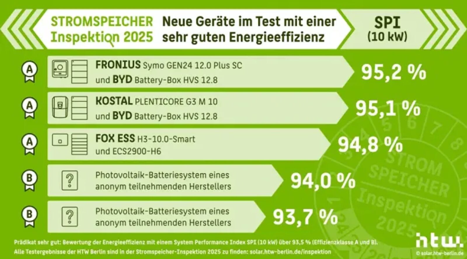 Chiński producent Fox ESS otrzymał ocenę klasy A dzięki wynikowi SPI na poziomie 94,8% dla zestawu H3-10.0-Smart Hybrid Inverter z akumulatorem ECS2900-H6, a to akurat tylko pokazuje rosnącą konkurencyjność producentów spoza Europy. Raport wyróżnił także przełomowe osiągnięcia technologiczne, bo oto falownik hybrydowy Plenticore G3 firmy KOSTAL ustanowił nowy rekord sprawności ładowania na poziomie 98,2%, co nie jest żadnym błędem pomiarowym, a efektem zastosowania półprzewodników z węglika krzemu i nowatorskiej konstrukcji układu. Z kolei system Home Plus firmy SAX Power wyróżnił się wysoką wydajnością rozładowania (ponad 98%), a to dlatego, że wykorzystuje architekturę wielopoziomową, w której każda z 24 sekcji ogniw akumulatora ma własną elektronikę sterującą.