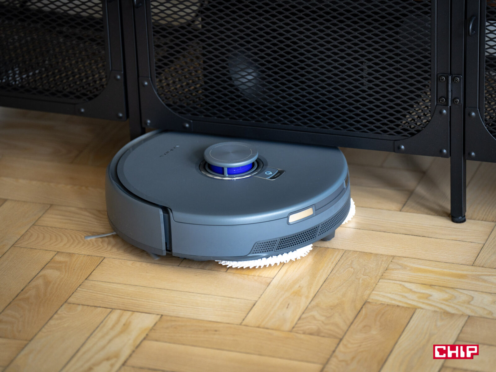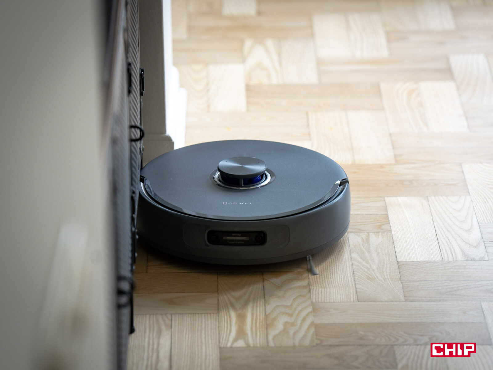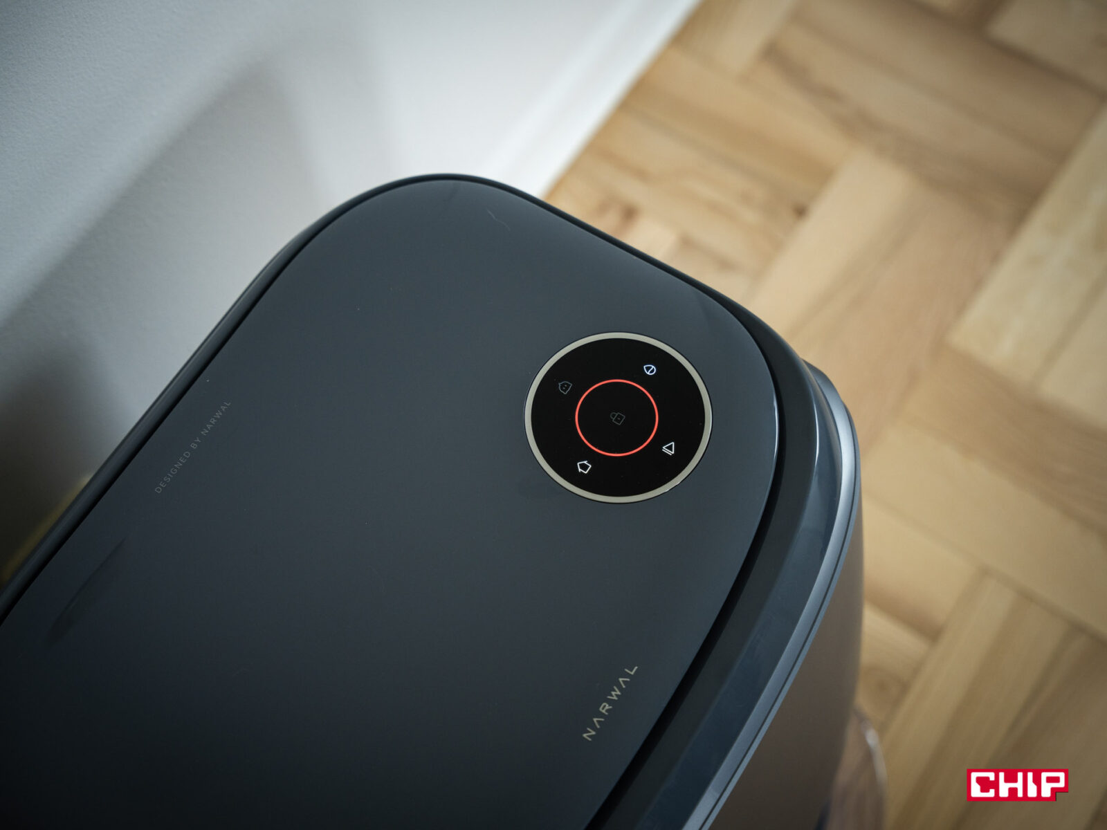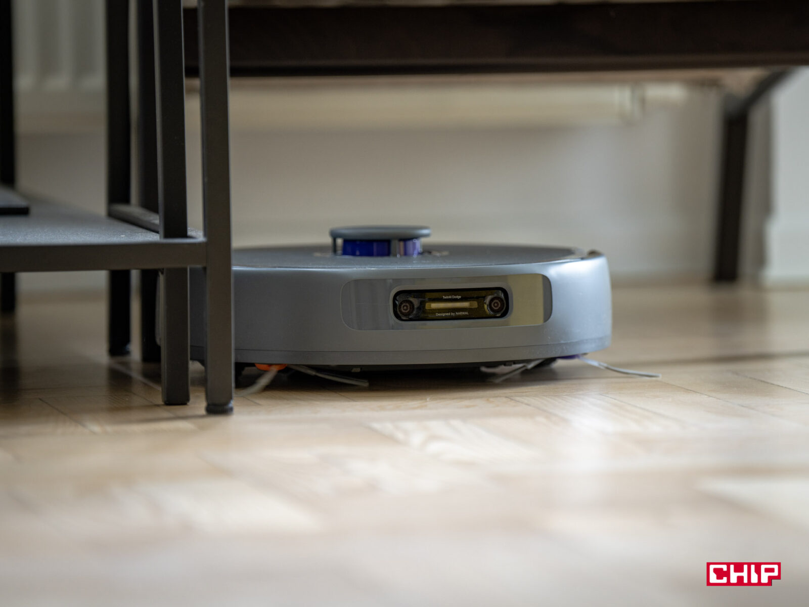 Sercem Narwala jest system VisionAI Pro wsparty technologią NarMind Pro, który analizuje otoczenie w czasie rzeczywistym. Narwal miał zaszczyt czyszczenia naszego biura, które z wyłączeniem trzech pokoi ma 106 metrów kwadratowych — jest to więc naprawdę spora przestrzeń, której też specjalnie nie przygotowywaliśmy przed mapowaniem: kable, lampy, krzesła biurkowe — wszystko zostało na swoim miejscu. Mapowanie tej przestrzeni zajęło Narwalowi zaledwie 12 minut, co jest rewelacyjnym wynikiem — zwłaszcza, że mieszkanie ma nietypowy układ z kilkoma wąskimi przejściami.