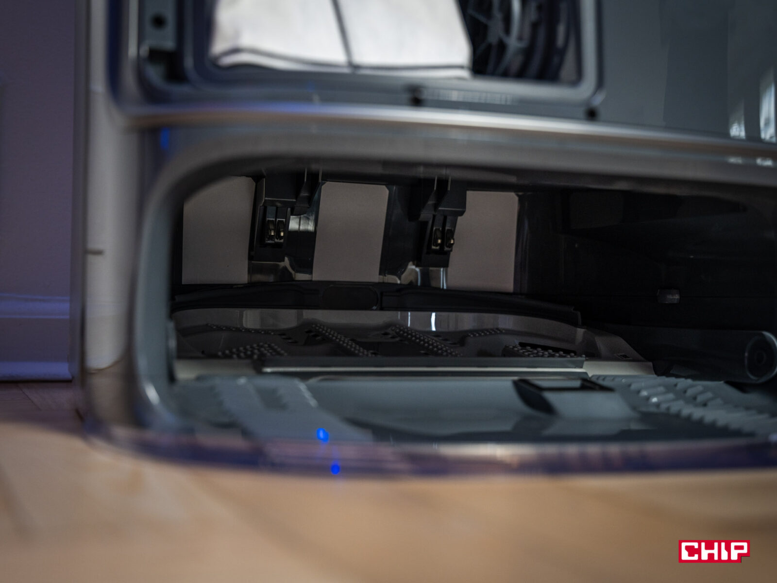 - Suszenie gorącym powietrzem: po myciu stacja suszy mopy gorącym powietrzem, co zapobiega powstawaniu pleśni czy nieprzyjemnych zapachów.