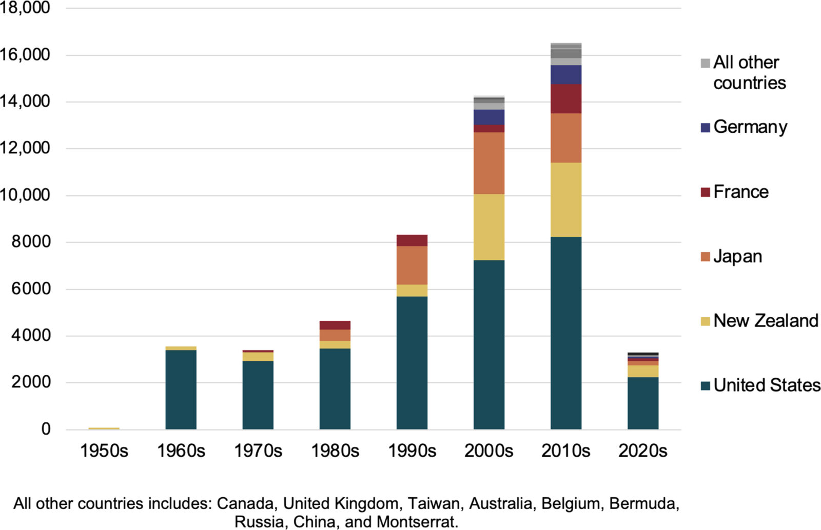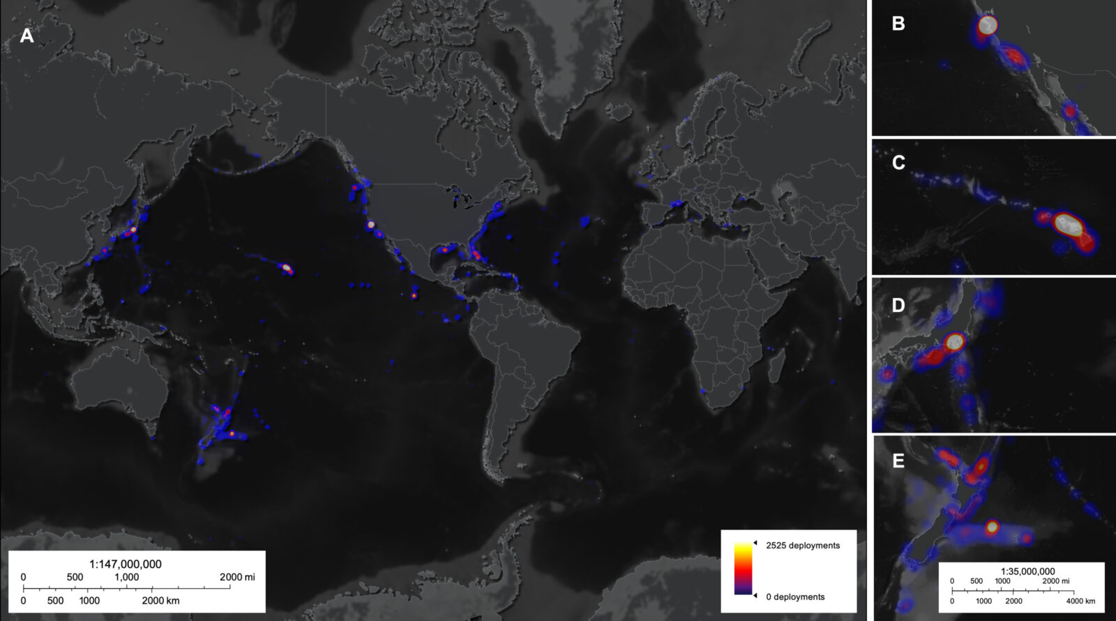 Dane zebrane przez zespół Katherine Bell pokazują również niepokojącą tendencję: większość zanurzeń odbywa się na obszarach łatwo dostępnych, przybrzeżnych i bogatych. Aż 97 proc. wszystkich wypraw od 1958 roku zostało przeprowadzonych przez zaledwie 5 krajów: USA, Japonię, Nową Zelandię, Francję i Niemcy. Co więcej, ponad 70 proc. zanurzeń miało miejsce w wyłącznych strefach ekonomicznych (EEZ) tych państw.