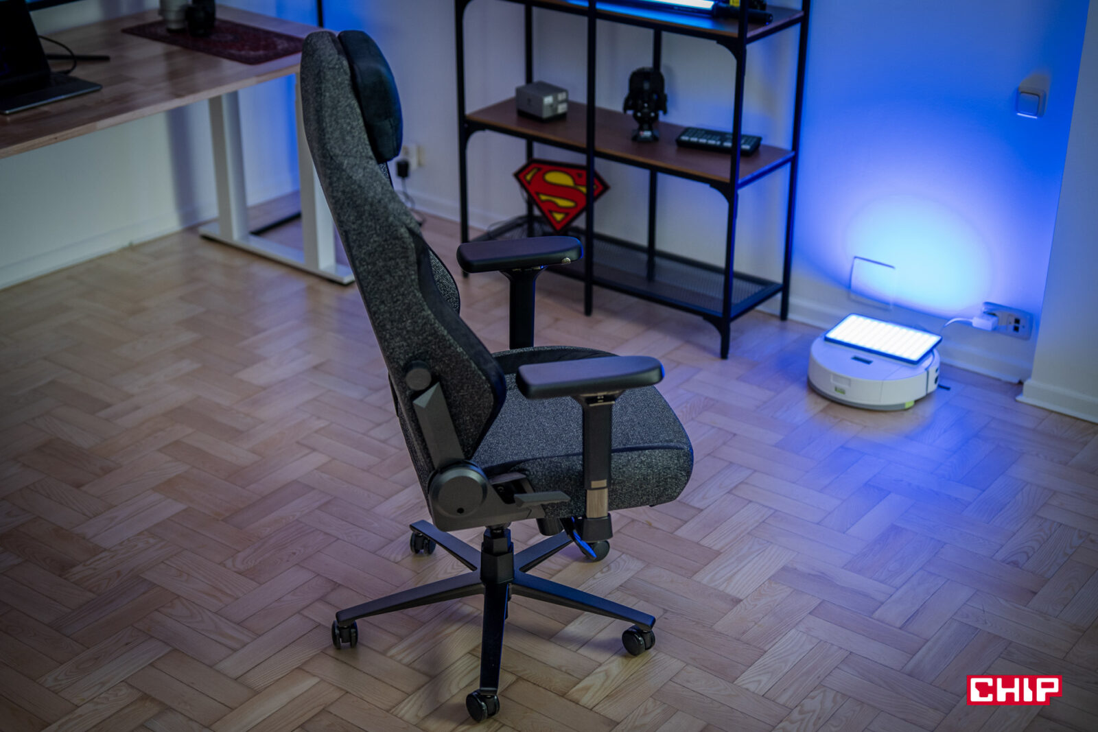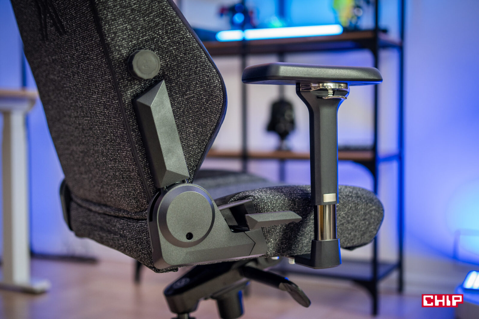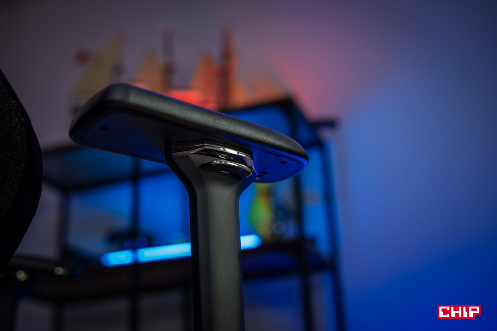 Podłokietniki FlexMotion 4D również są warte wspomnienia. Mamy tutaj regulację w czterech płaszczyznach — wysokości, głębokości, szerokości i kąta nachylenia — która umożliwia precyzyjne dopasowanie do sylwetki i stylu pracy. Bez względu na to, czy piszemy na klawiaturze, używamy myszki, czy trzymamy kontroler, podłokietniki wspierają ramiona i nadgarstki, co jest wygodne i zmniejsza zmęczenie naszych górnych kończyn.