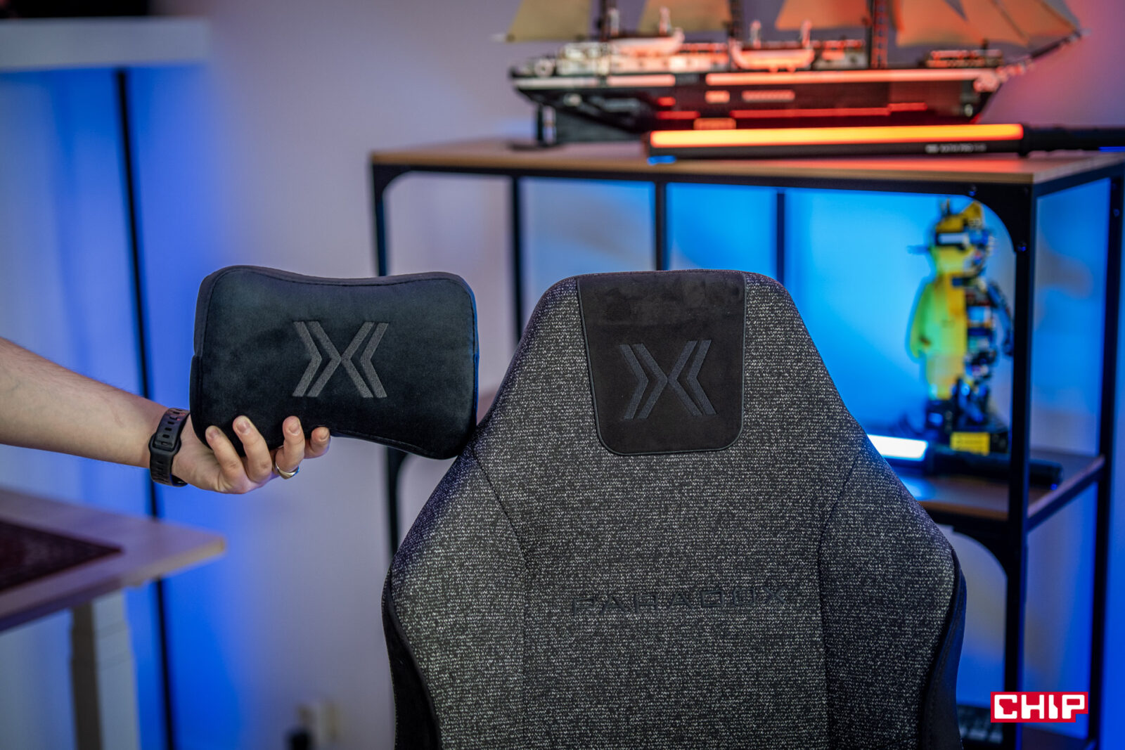 Należy wspomnieć również o zagłówku, mocowanym na magnes. Bardzo łatwo można tę poduszkę założyć lub zdjąć, a jej miękkość zapewnia wsparcie dla karku podczas przerw czy relaksu. Drobny, ale przemyślany i bajerancki detal.