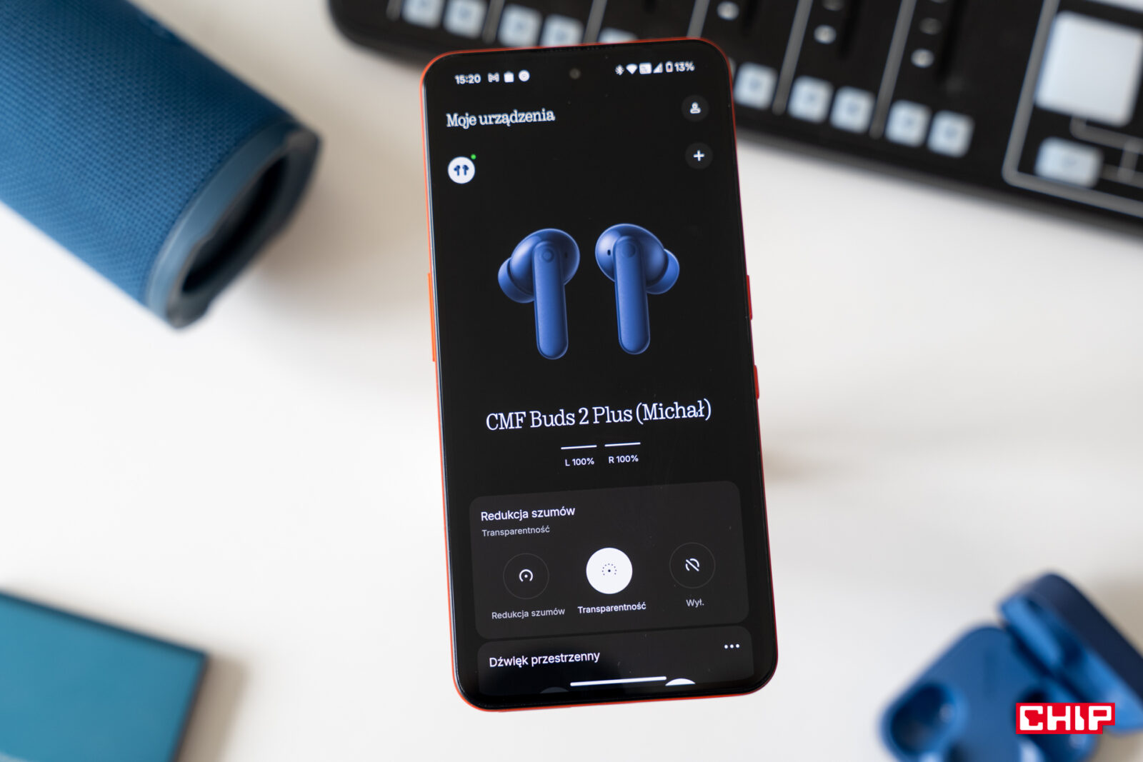 A co z mikrofonami, w końcu łącznie jest ich tutaj aż 6? Jakość nagrania słyszycie w próbce zarejestrowanej powyżej i ta nie wypada źle. Przede wszystkim nasz głos nie jest aż tak mechaniczny jak w niektórych słuchawkach. Klarowność wypowiedzi zostaje na wysokim poziomie przy jednoczesnym zachowaniu dobrej jak na tę cenę naturalności głosu. Ten stan utrzymuje się także podczas jazdy komunikacją czy spaceru w wietrzny dzień. Nie musicie się ukrywać przed podmuchami, gdy korzystacie z CMF Buds 2 Plus.