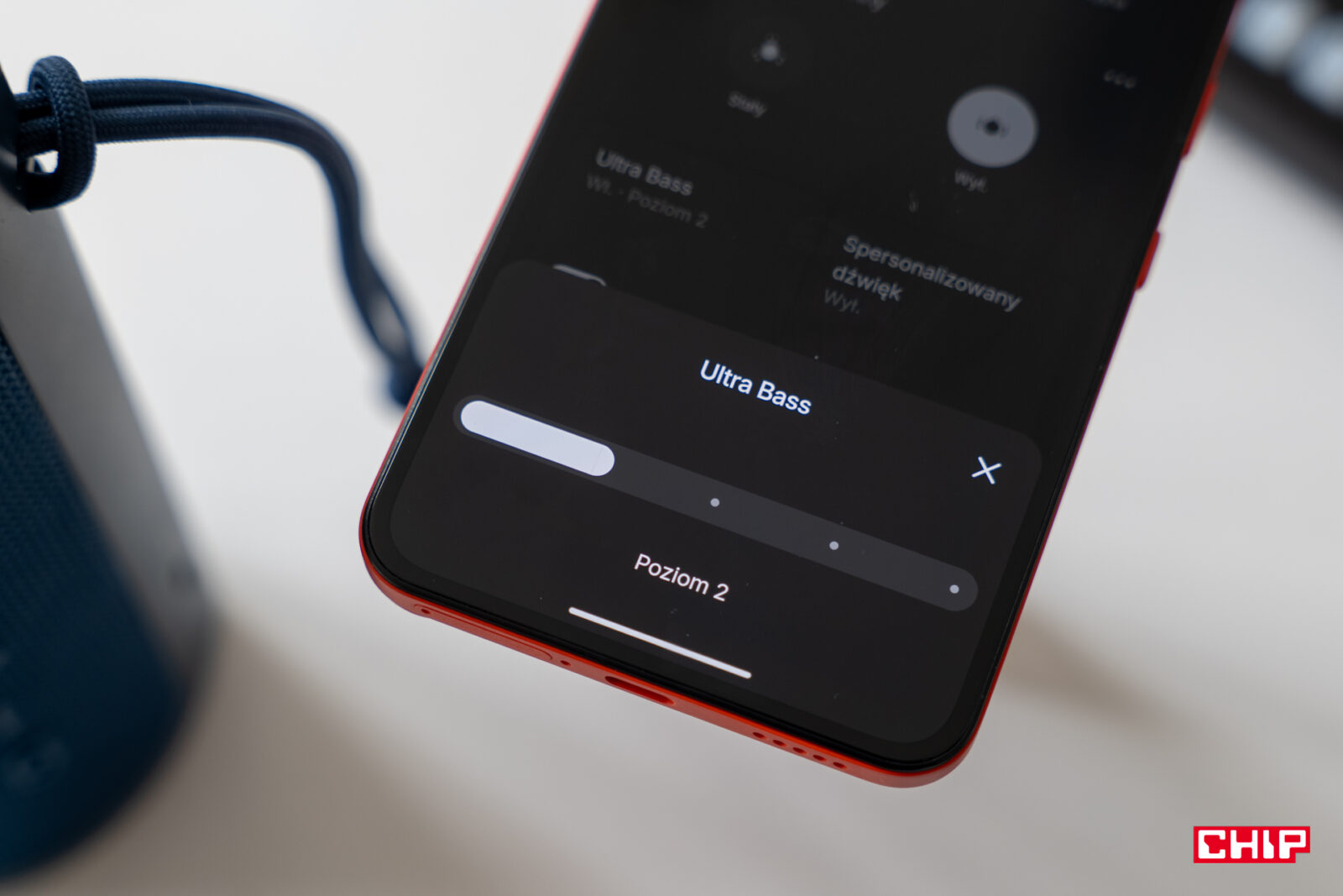 Kolejna opcja to Ultra Bass, który możemy na stałe wyłączyć, ale jeżeli chcemy poczuć w życiu więcej basu, zyskujemy pięciostopniową regulację intensywności. Nie zniekształca utworów, ale potrafi zmienić ich oblicze. Dla fanów dźwięków trafiających do ucha z mocą to z pewnością coś przyjemnego. Dla mnie, słuchającego muzyki elektronicznej – całkiem ciekawa opcja. Musiałem jednak ograniczyć ją do poziomu drugiego, bo przy wyższych stopniach regulacji muzyka staje się dość jednotorowa w odbiorze.