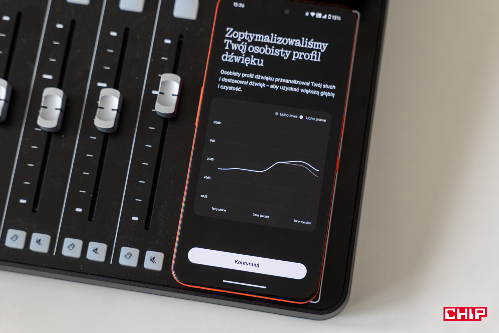 Nie zabrakło też ustawień personalizacji dźwięku. Odbywa się to poprzez włożenie słuchawek do uszu i nasłuchiwanie tego, czy w tej chwili jest cisza, czy też słyszymy zadany ton. Procedura trwa kilka minut i odbywa się osobno dla lewej i prawej słuchawki. Na koniec powstaje nasz profil i krzywa pokazująca dysproporcje między parametrami uszu. Tak skonfigurowane ustawienia możemy oczywiście wyłączyć, ale z mojego doświadczenia wiem, że nieco poprawia to wrażenia ze słuchania muzyki czy podcastów.