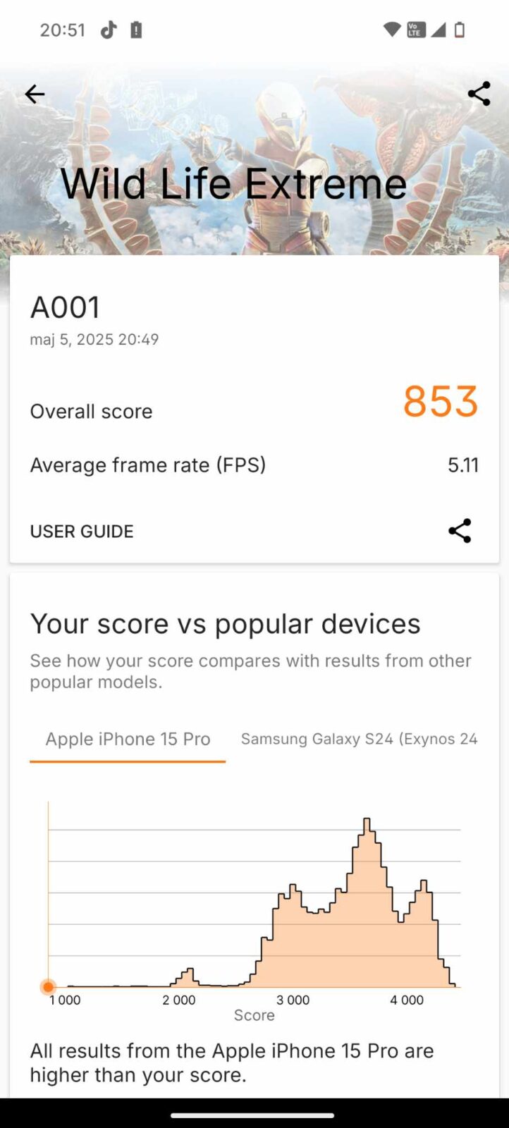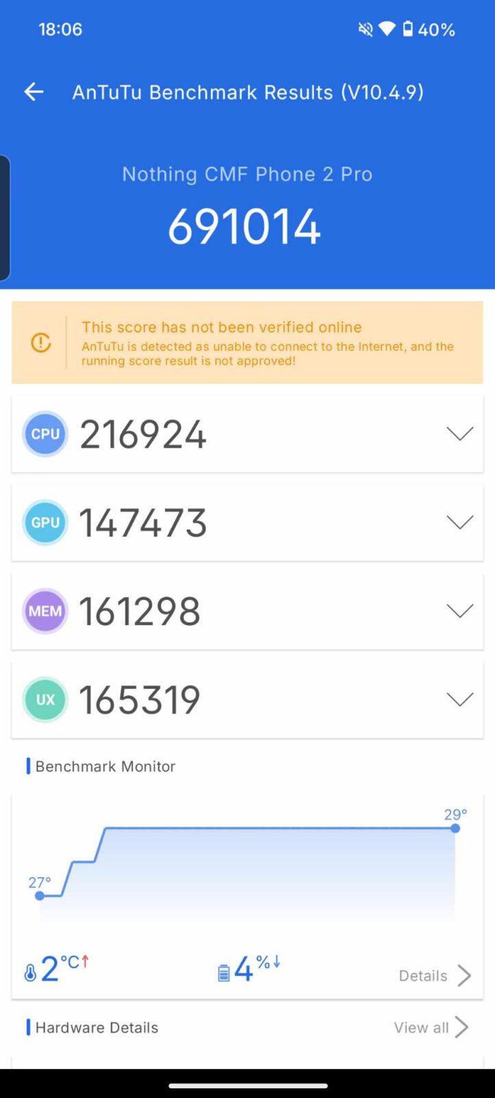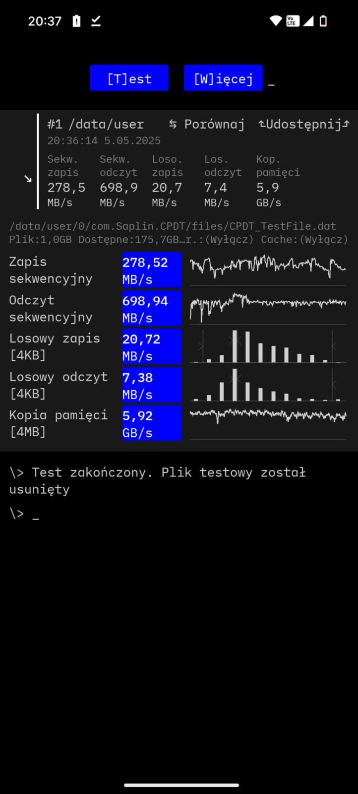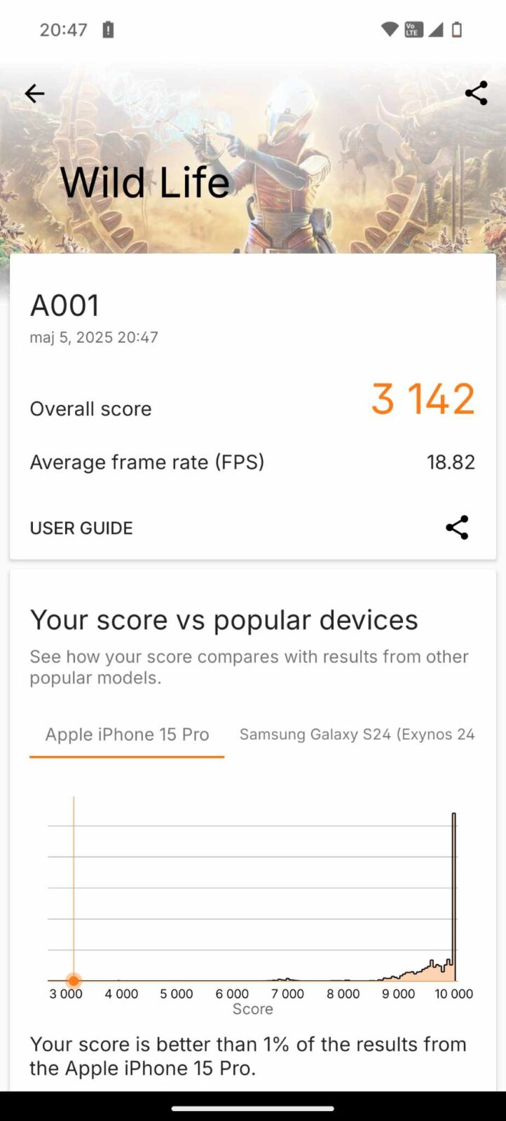 Patrząc na benchmarki, wnioskuję, że zastosowana pamięć to UFS 2.2. Nic w tym złego, ale i powoli staje się to standardem w tej cenie. Ważne, że smartfon pracuje płynnie i poza pewnymi błędami w codziennej optymalizacji, przez które musiałem go wyłączyć (raz nie reagował na dotyk, raz nie chciał się odblokować), nie działo się tu nic podejrzanego. W skrócie: jest płynnie, animacje wyglądają bardzo przyjemnie dla oka, a 120 Hz zobaczymy nie tylko w ustawieniach, ale i podczas poruszania się w aplikacjach. CMF Phone 2 Pro ma dobrą wydajność i dobrą optymalizację – coś, co wcale nie jest regułą w tej klasie cenowej.