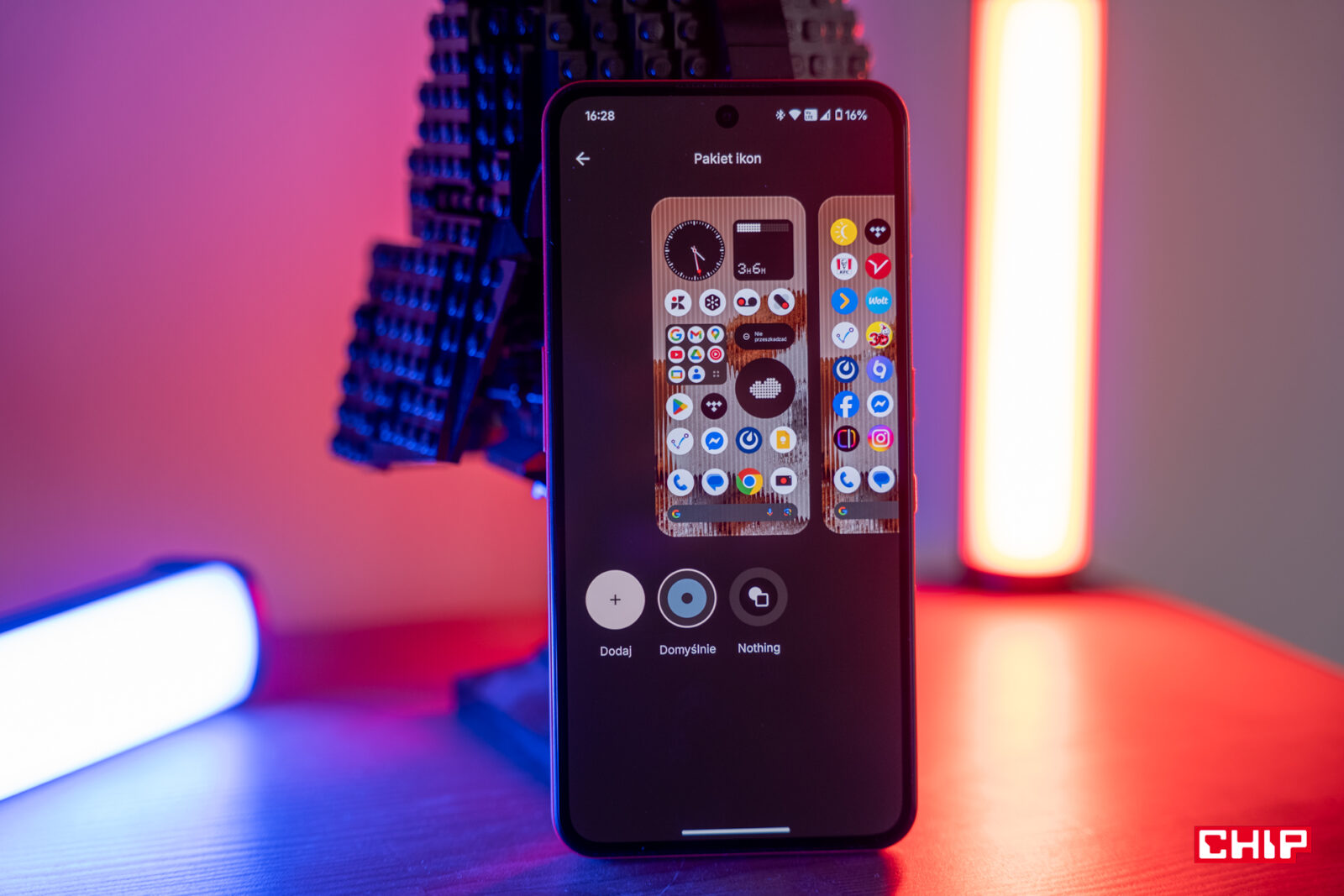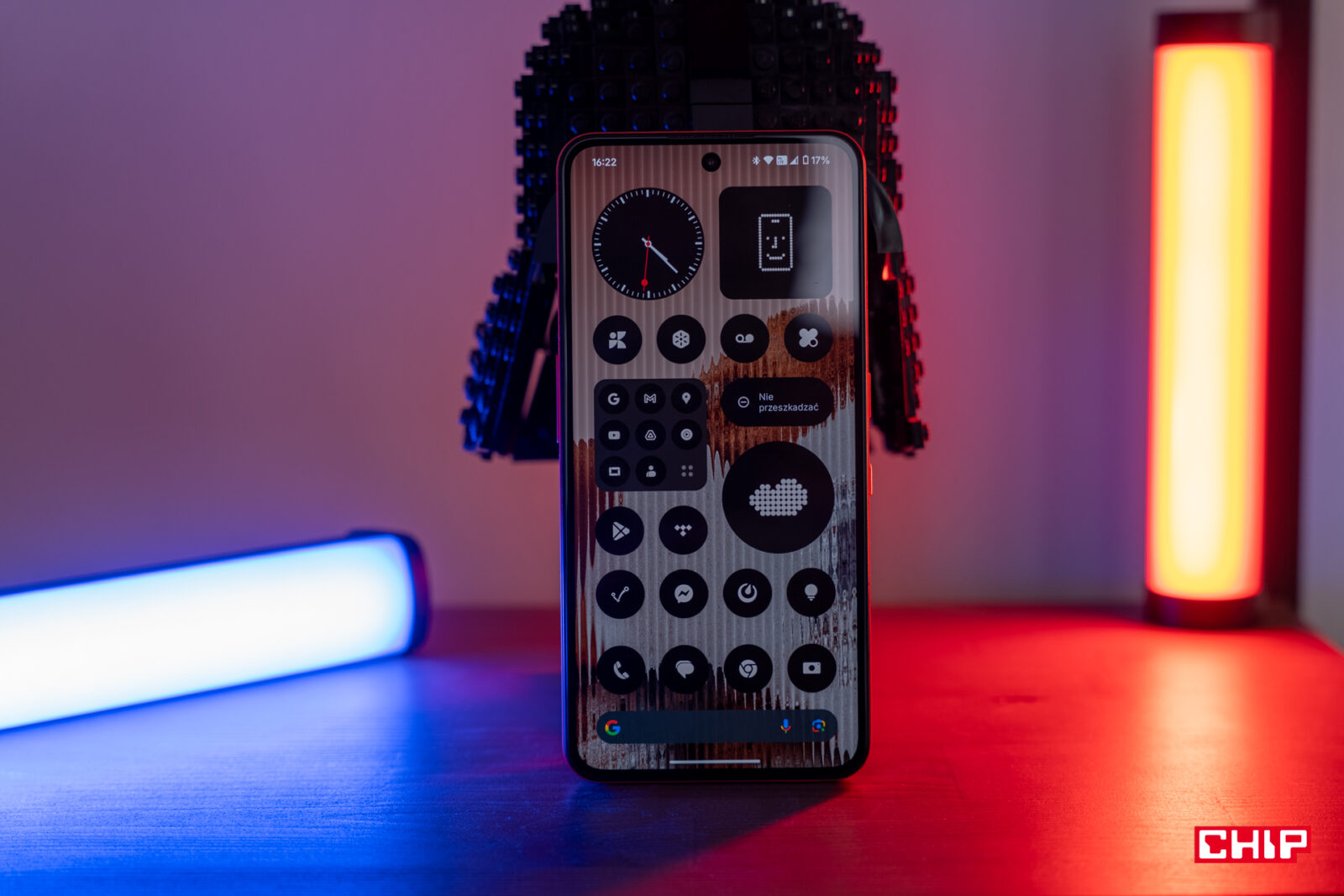 Nakładka NothingOS wizualnie jest inna. Ale nie musi być, bo producent od początku daje nam wybór domyślnego wyglądu Androida lub modyfikacji Nothing. Ja od razu zdecydowałem się na te drugie i cieszy mnie, że producent wybrnął z zadania modyfikacji ikon tak, by pasowały pod monochromatyczny układ. Może nie są one przez to najczytelniejsze i łatwe do objęcia wzrokiem, ale pasują do wizji. Ta uległa pewnej zmianie, bo więcej możemy zrobić zarówno z ekranem blokady, jak i dość podstawowym, ale obecnym Always-On Display.