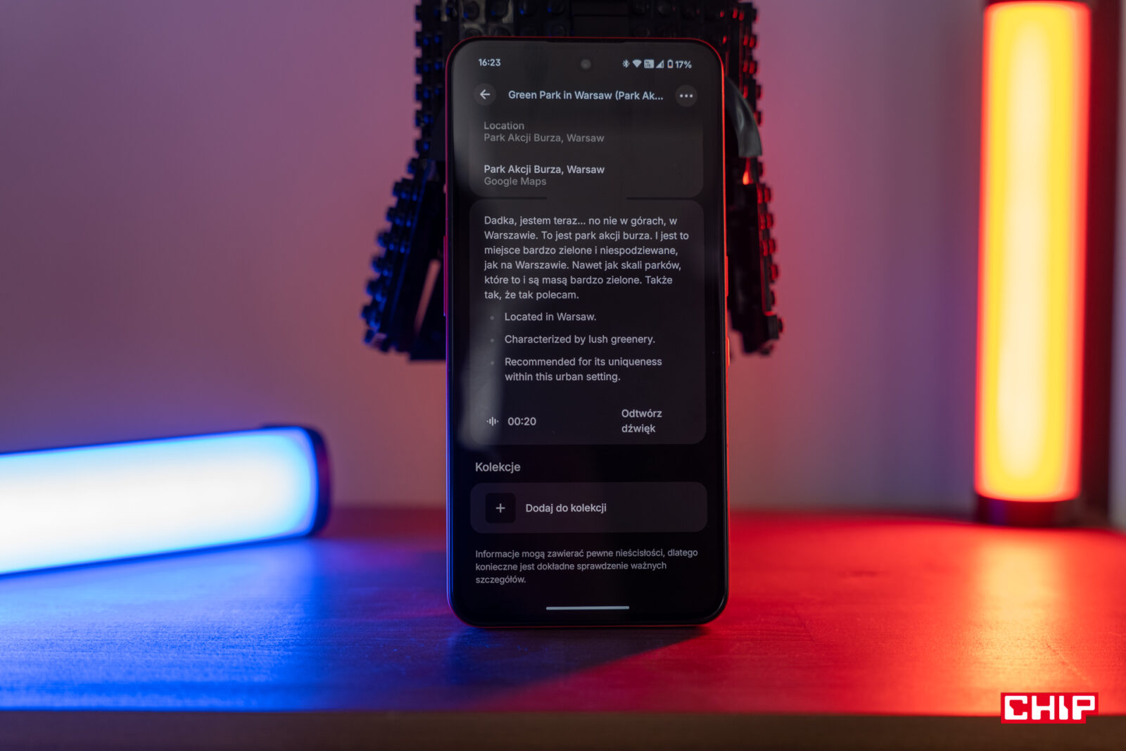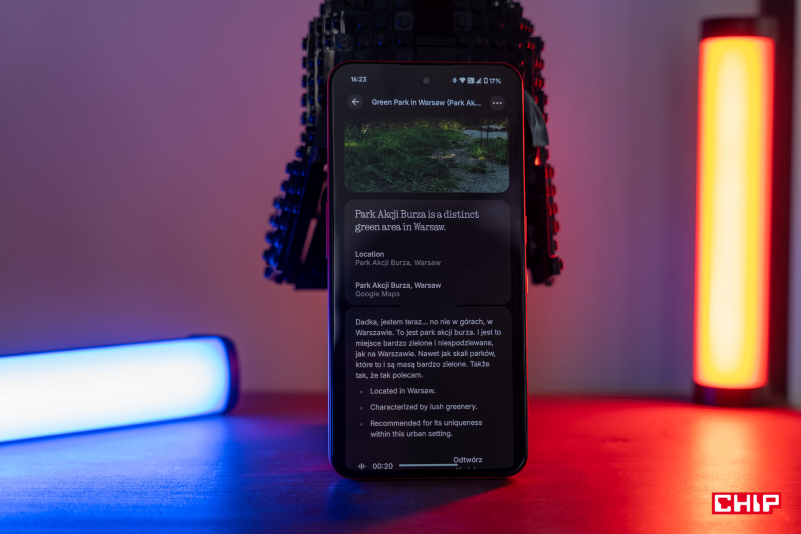 Rozumiem sens przycisku Essential Key, który ma przenosić nas do rozwiązania o nazwie Space. Jednocześnie chciałbym, żeby ten odpowiednik wirtualnego dziennika miał opcję domyślnego zrobienia zdjęcia, co mogłoby dodać kontekstu. Nie do końca dobrze spisuje się podsumowywanie oraz rozumienie mowy w języku polskim i tutaj potrzeba dokładniejszego modelu, bo nawet przy dokładnym artykułowaniu sylab niektóre słowa są wzięte z końcowej części algorytmu. Jednocześnie świetnie rozpoznaje treści ze zdjęć i myślę, że największym problemem będzie jedynie implementacja Gemini Live – tej konkurencji aplikacja Space może nie przeżyć.