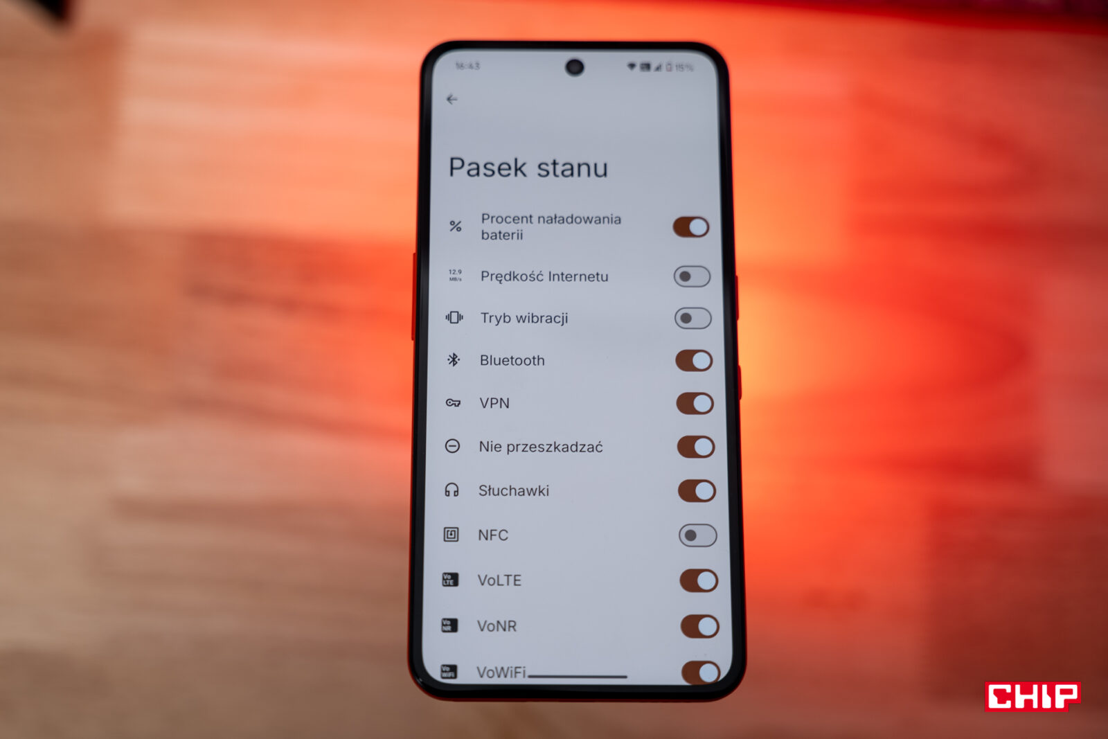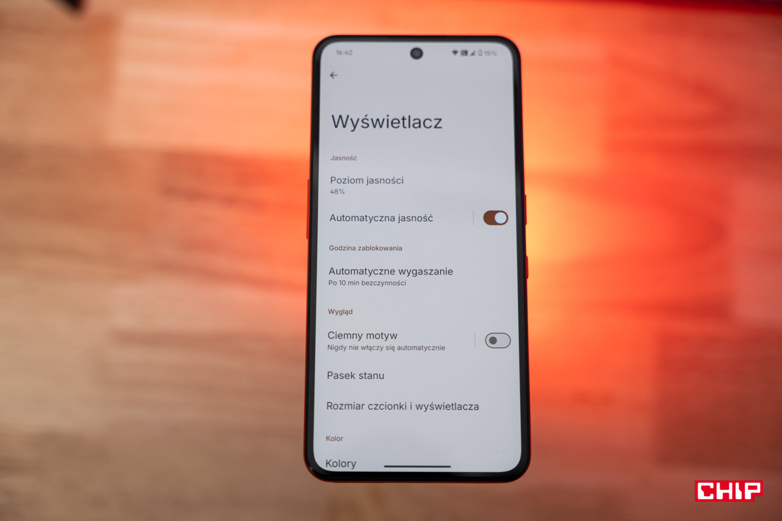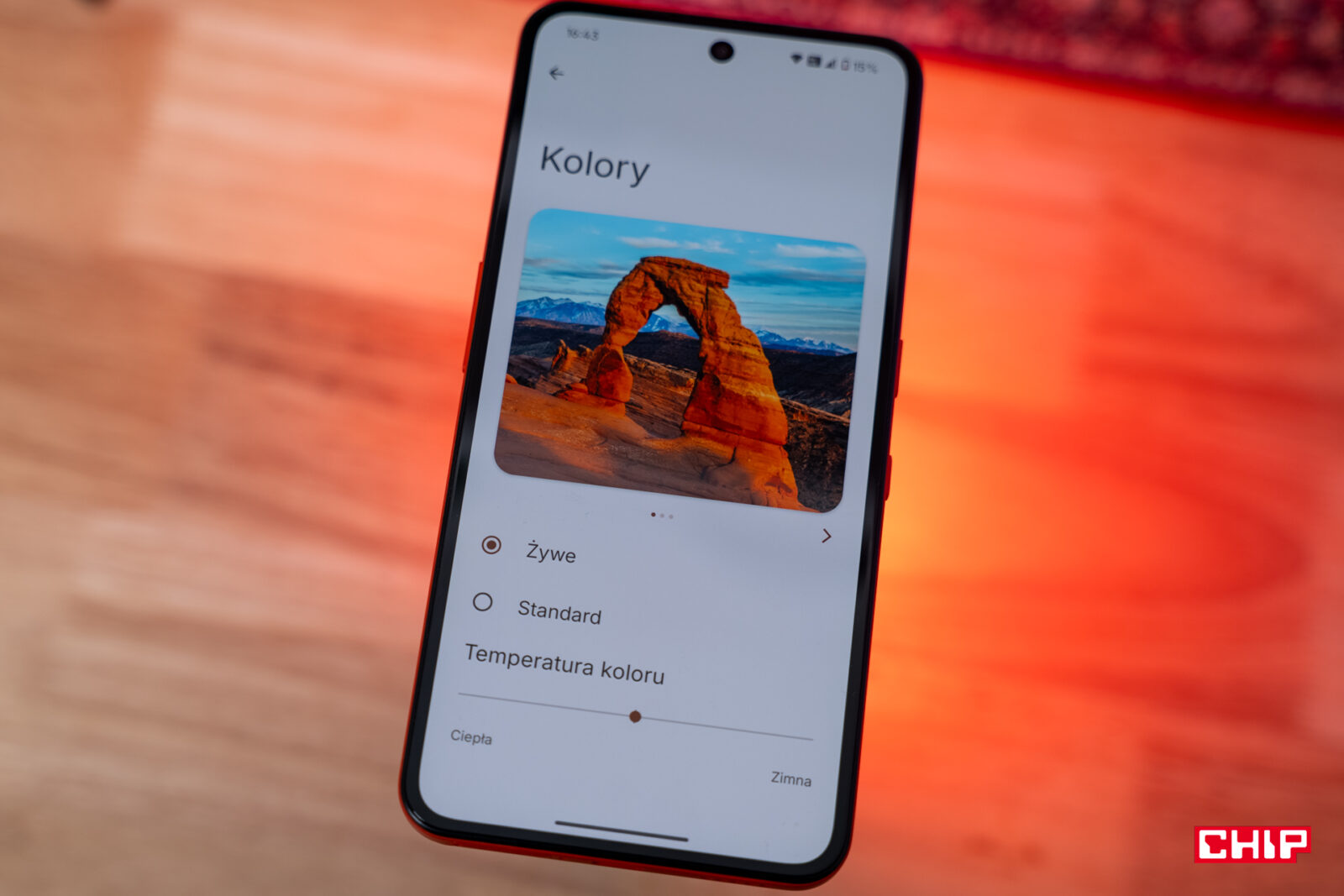Wśród ustawień znajdziemy suwak odpowiadający za temperaturę barwową oraz poziom nasycenia obrazu (żywy i standardowy). Możemy także wyłączyć tryb HDR – coś, co powinna mieć większa ilość urządzeń. Poza włączeniem automatycznej jasności czy częstotliwości odświeżania to tyle. Liczę, że w przyszłości Nothing znajdzie sposób na dodanie większej ilości narzędzi do personalizowania wyglądu ekranu, ale na ten moment ten ekran po prostu broni się sam – kolorami, kontrastem i jasnością.