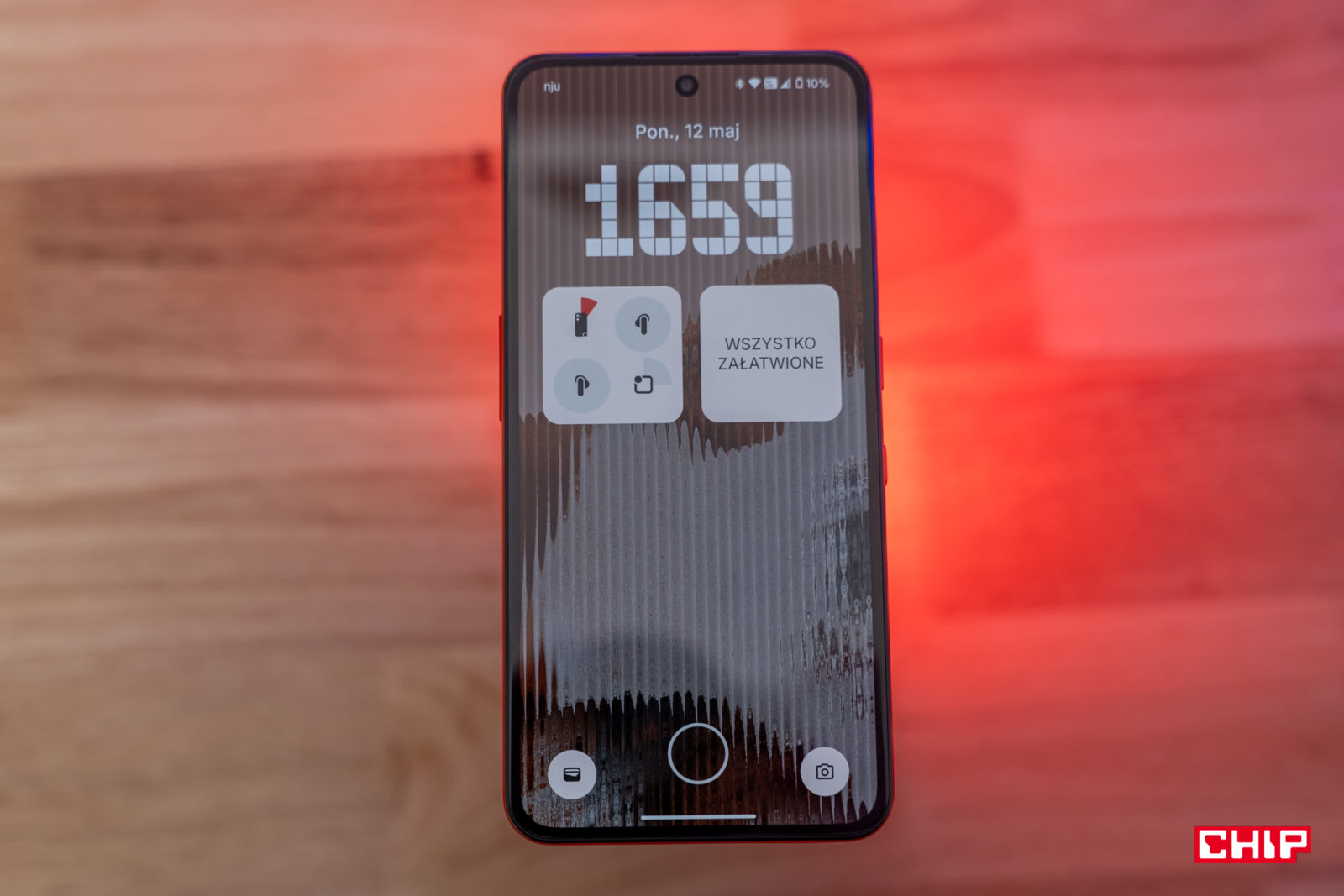 Czy Nothing OS 3.2 daje frajdę z korzystania? Niewątpliwie jest w nim pewien urok i nakładka może się podobać, bo naprawia pewne małe błędy Androida (jak np. to, że wystarczy raz kliknąć w panelu kontrolnym, by wyłączyć Wi-Fi). Jednocześnie w znacznym stopniu korzysta z doświadczenia “czystego” systemu, by nie komplikować spraw. Szkoda, że w Polsce znowu jesteśmy traktowani po macoszemu i nie mamy pełnego wizualnego doświadczenia Nothing ze względu na wybór wyglądu napisów, ale to mały problem. Większe wiązały się z zamrożeniem dotyku i wygaszeniem ekranu, a to zdarzyło się dokładnie 4 razy przez dwa tygodnie. Po 4,5 GB aktualizacji problem zniknął.