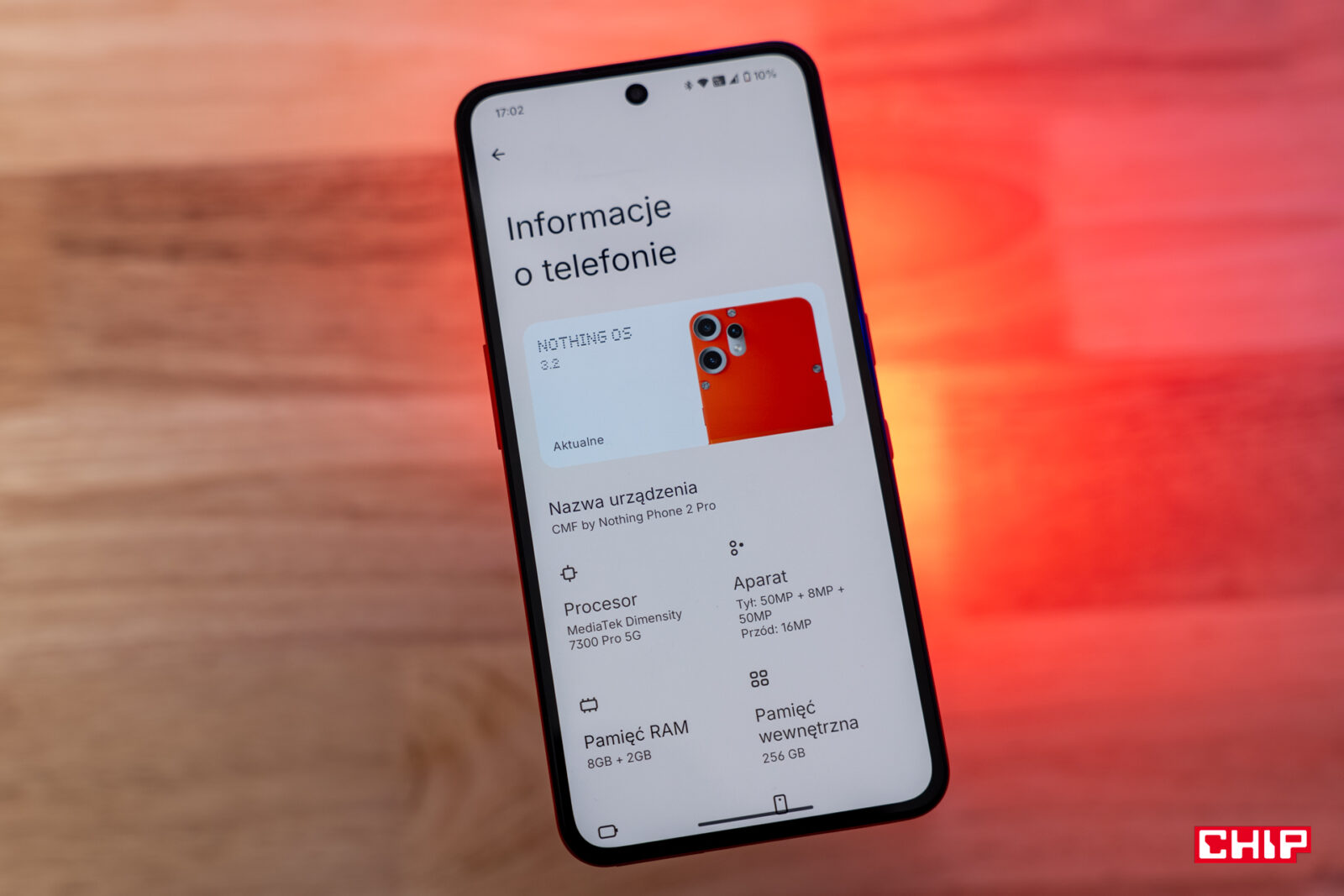 CMF Phone 2 Pro daje sporo dobrego w swojej klasie cenowej. MediaTek Dimensity 7300 Pro to stara-nowa jednostka, bowiem pomimo tych samych zegarów, co w zwykłej 7300, ma mieć o 5% lepszy rezultat układu graficznego i o 10% więcej mocy w obliczeniach procesorowych. I choć architektura rdzeni Cortex-A78 o taktowaniu 2,5 GHz oraz Cortex-A55 o poziomie 2 GHz pamięta jeszcze czasy pandemii, tak proces litograficzny 4nm czyni te rozwiązania energooszczędnymi. Grafika to z kolei Mali G615-MC2. Zestaw sparowano z 8 GB RAM-u i 128 lub 256 GB przestrzeni na pliki.