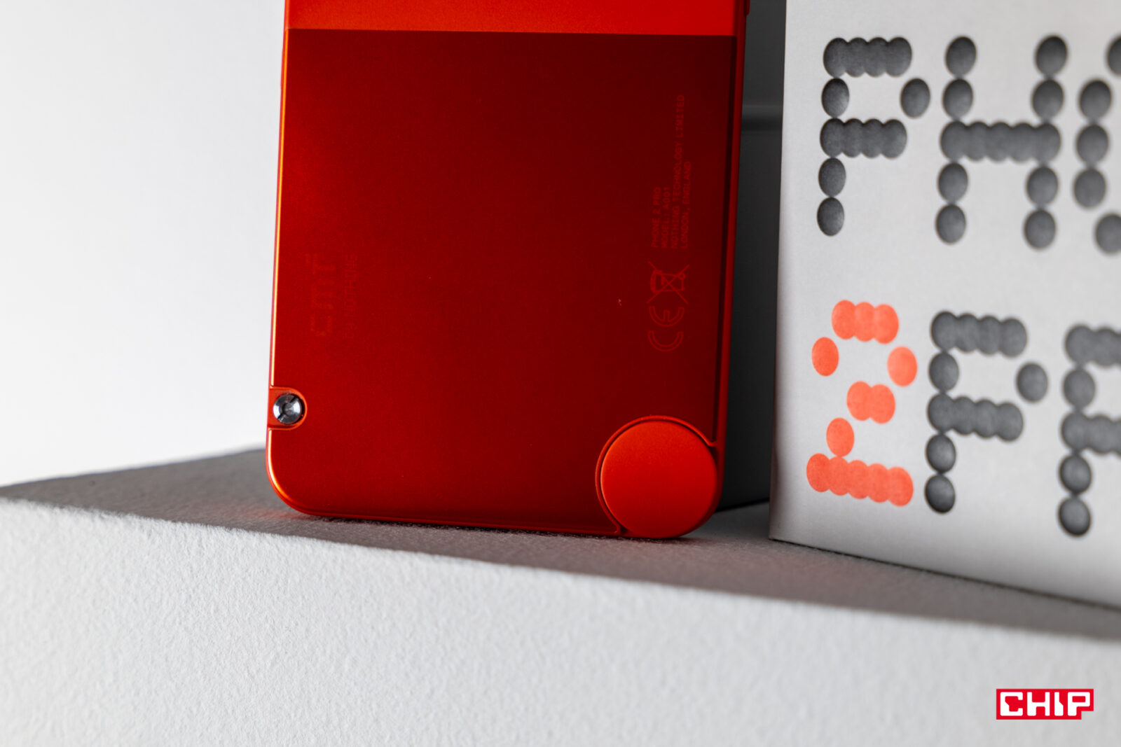 Tył obudowy CMF Phone 2 Pro jak na razie nie zebrał jednak żadnych rys, za to dość skutecznie gromadzi i uwypukla odciski palców. Jak na estetyczne urządzenie to dość niefrasobliwy wybór. Na tym jednak kończą się wady tej bryły. Udało się ją zabezpieczyć zgodnie ze standardem IP54, co rekordem nie jest, ale i tak warto to odnotować przy tej ilości ruchomych elementów. Co prawda tylnej klapki nie zdejmiemy, ale odkręcić śrubki jak najbardziej możemy, bo to one pomogą zamontować dodatkowe etui.