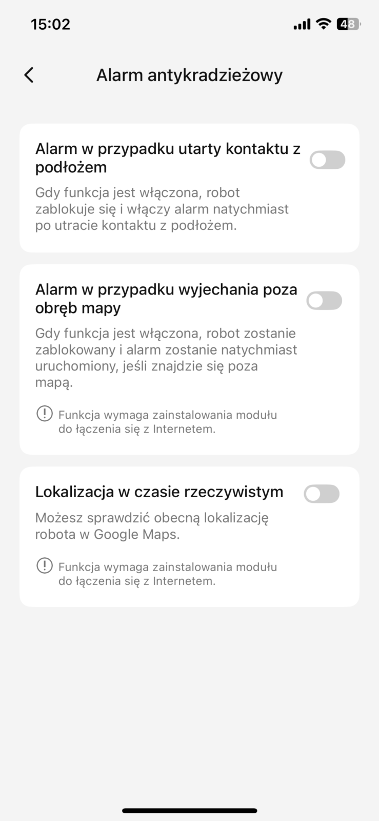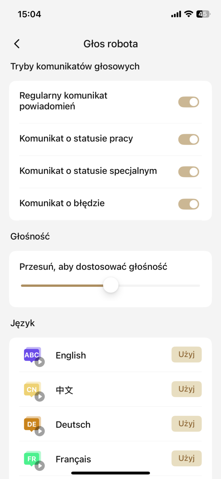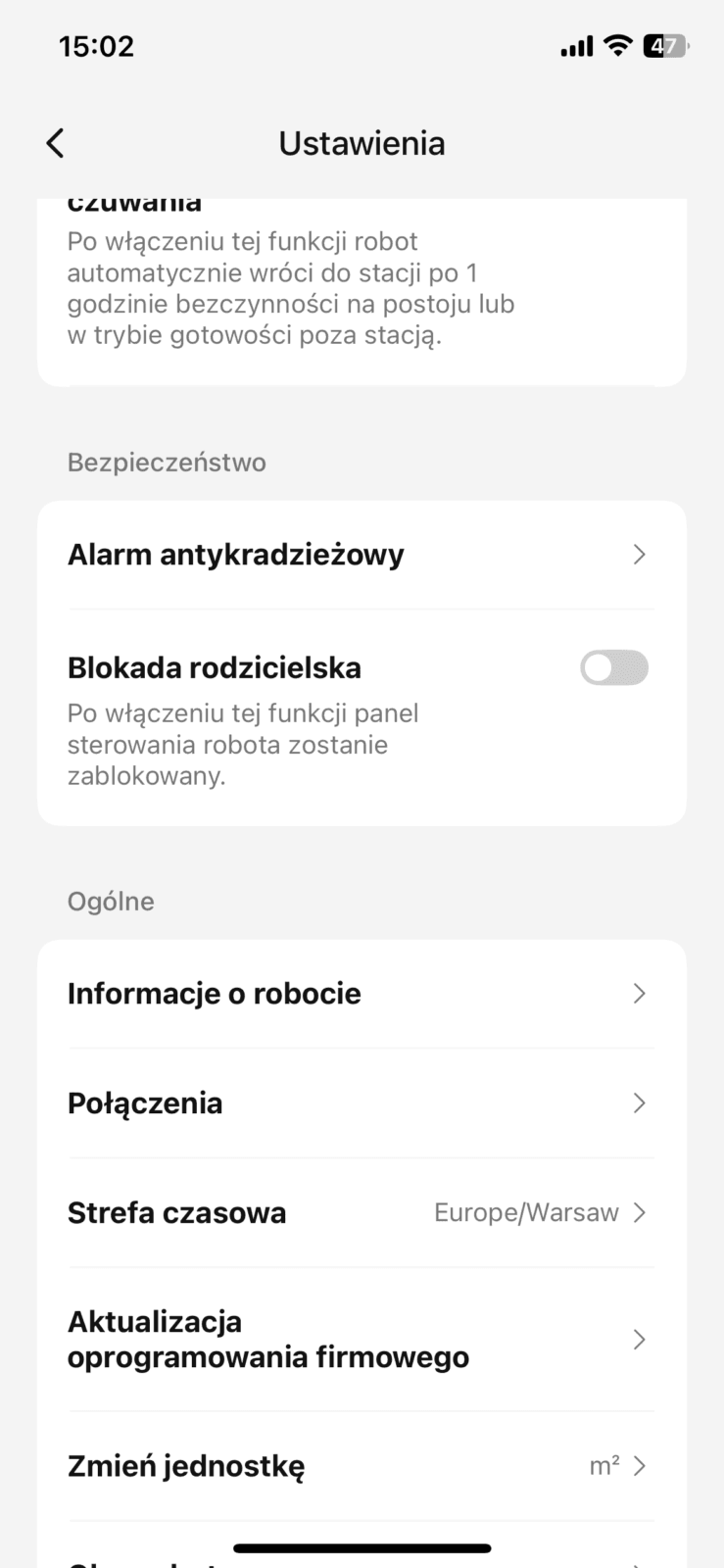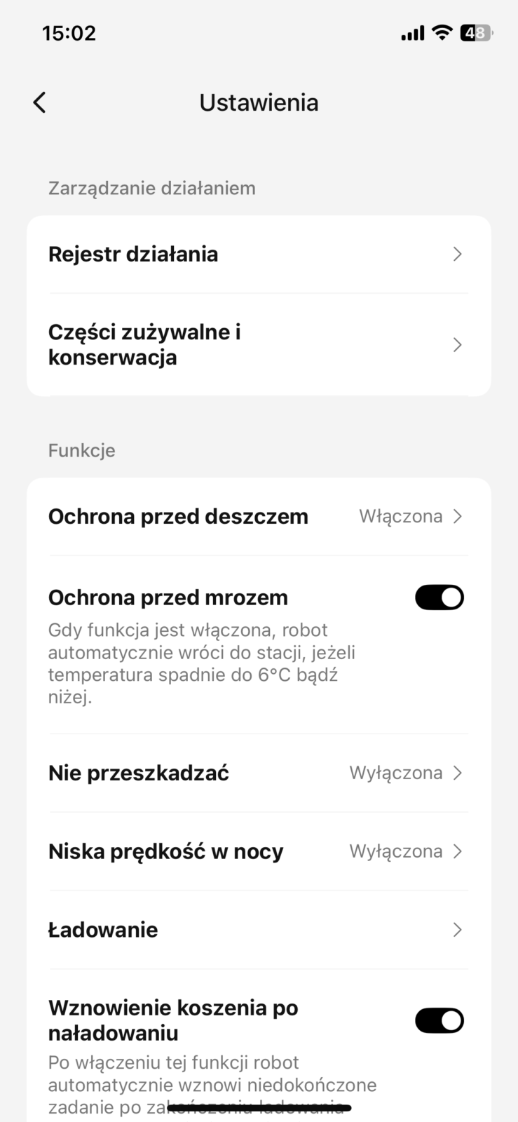 Program podpowiada też zużycie ostrzy, pobiera aktualizacje OTA i wysyła powiadomienia o zakończeniu pracy, błędach czy podniesieniu robota. Całość sprawia wrażenie rozbudowanej, ale logicznie poukładanej – o ile nie oczekujemy integracji z szerszym systemem smart-home, MOVAHome spełnia większość potrzeb przeciętnego użytkownika.