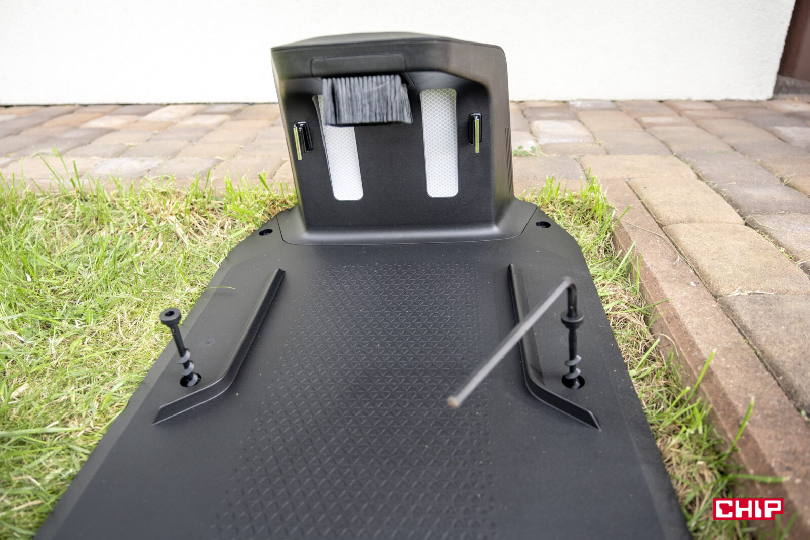 Już na starcie Mova 1000 zyskuje – brak konieczności rozkładania przewodu granicznego to ogromna oszczędność czasu i nerwów w porównaniu do starszych generacji robotów. W pudełku, oprócz samego robota i solidnie wyglądającej stacji dokującej (składającej się z wieży i płyty bazowej), znajdziemy niezbędne okablowanie (w tym praktyczny 10-metrowy przedłużacz) oraz komplet zapasowych ostrzy tnących.