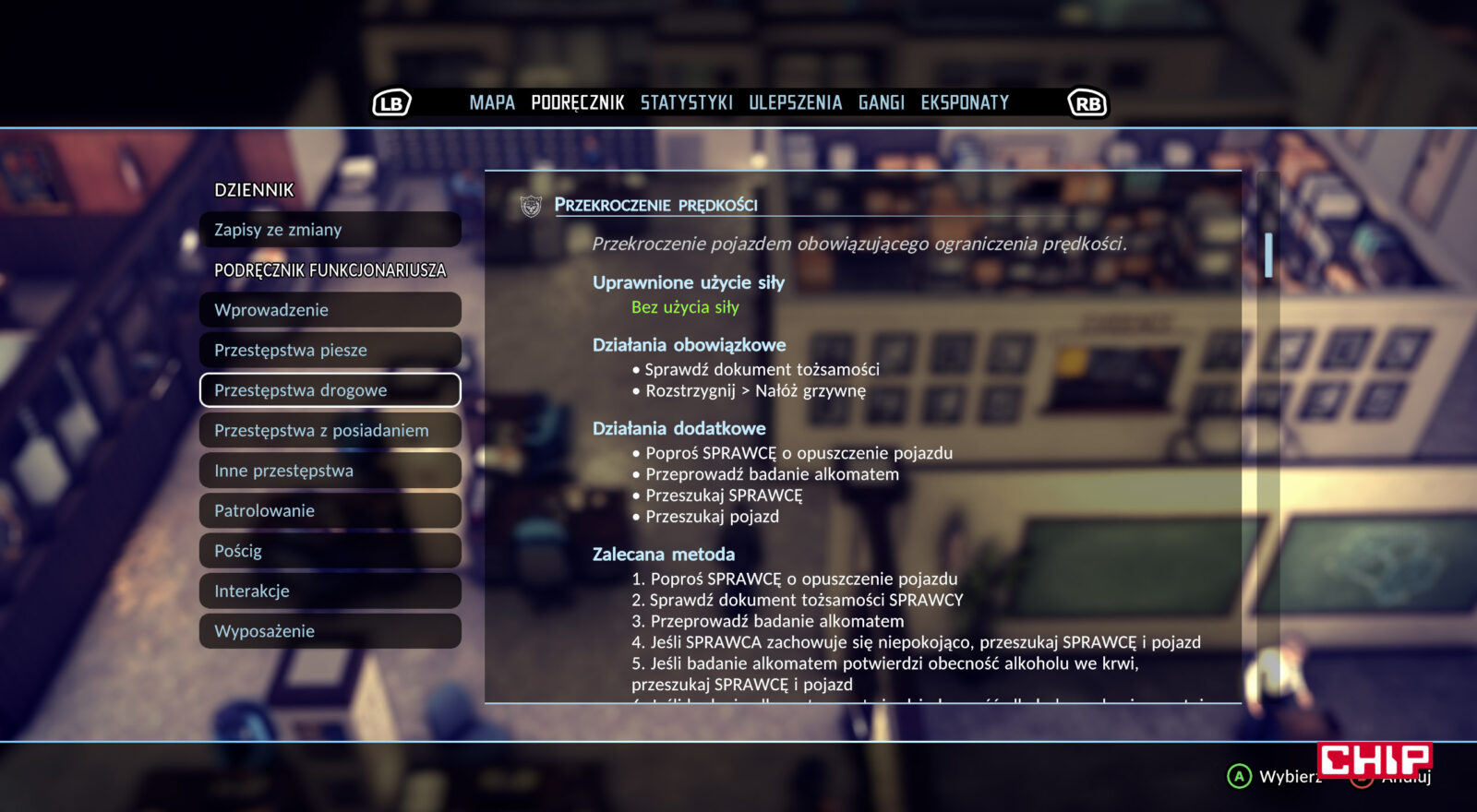 Skąd mamy wiedzieć, jak zachować się w danej sytuacji? Gra oferuje dostęp do bardzo rozbudowanego kodeksu przestępstw z dokładnym opisem poszczególnych procedur i na początku gry warto to przeczytać i zapamiętać. W przeciwnym razie nasza policyjna kariera będzie iść bardzo opornie.