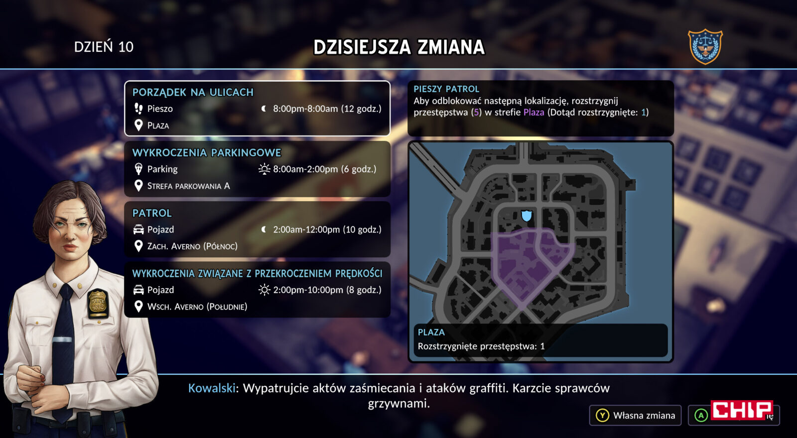 Patrole to tylko część gry. W tle cały czas toczą się śledztwa, do których musimy zbierać dowody i tu zaczyna się element strategiczny. W trakcie dnia pracy musimy wyrobić określoną normę, przykładowo wystawić odpowiednią liczbę mandatów, co zabiera czas. Jednocześnie musimy znaleźć czas na to, żeby pchnąć do przodu śledztwa. Spotkać się z informatorem czy wziąć udział w nielegalnych wyścigach ulicznych. Do tego miasto cały czas żyje i możemy dostać wezwanie do przestępstwa w okolicy. Od nas zależy, czy przyjmiemy zgłoszenie i poświęcimy czas, ale jednocześnie możemy liczyć na więcej punktów doświadczenia.