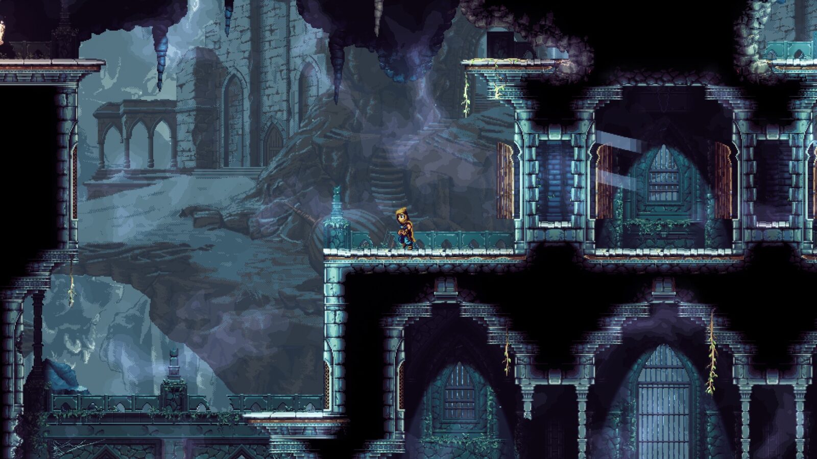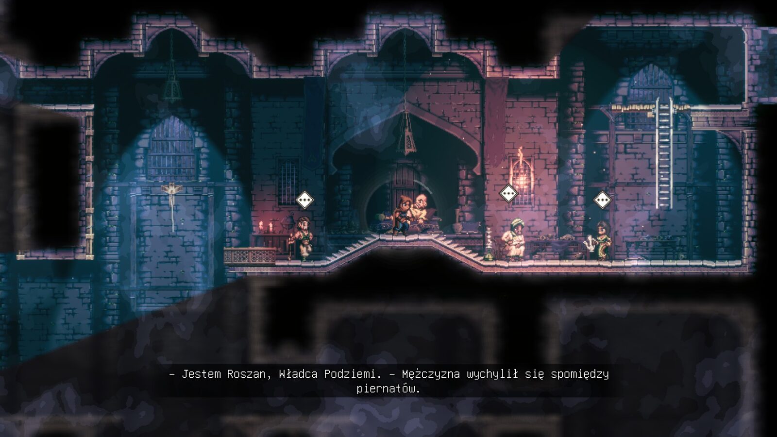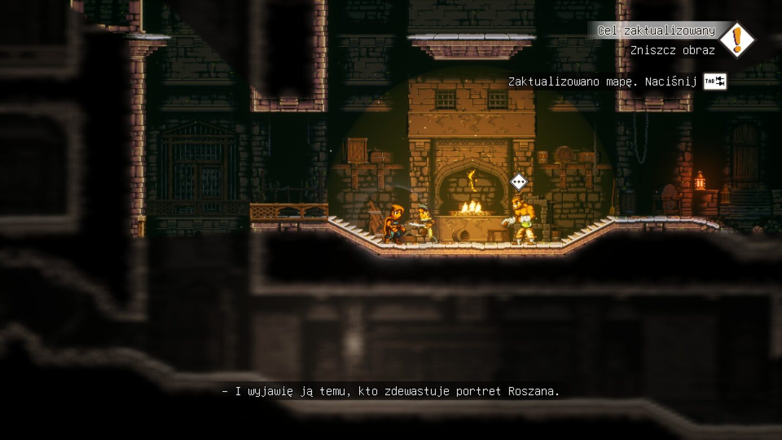 Moje skojarzenia na wstępie odwoływały się do gier z czasów Amigi – nic jednak dziwnego, skoro mamy tu uroczą grafikę w stylu retro, jednak z bogactwem detali, jakie były niemożliwością dla ówczesnych maszyn. Wystarczy jednak przyjrzeć się dokładnie zamieszczanym w tej recenzji zrzutom ekranu, aby w pełni docenić szczegółowość lokalizacji. A zaręczam, że równie udane są także animacje – ruchy wszystkich postaci, jak i elementy statyczne, czyli płonące pochodnie, falująca woda itp.