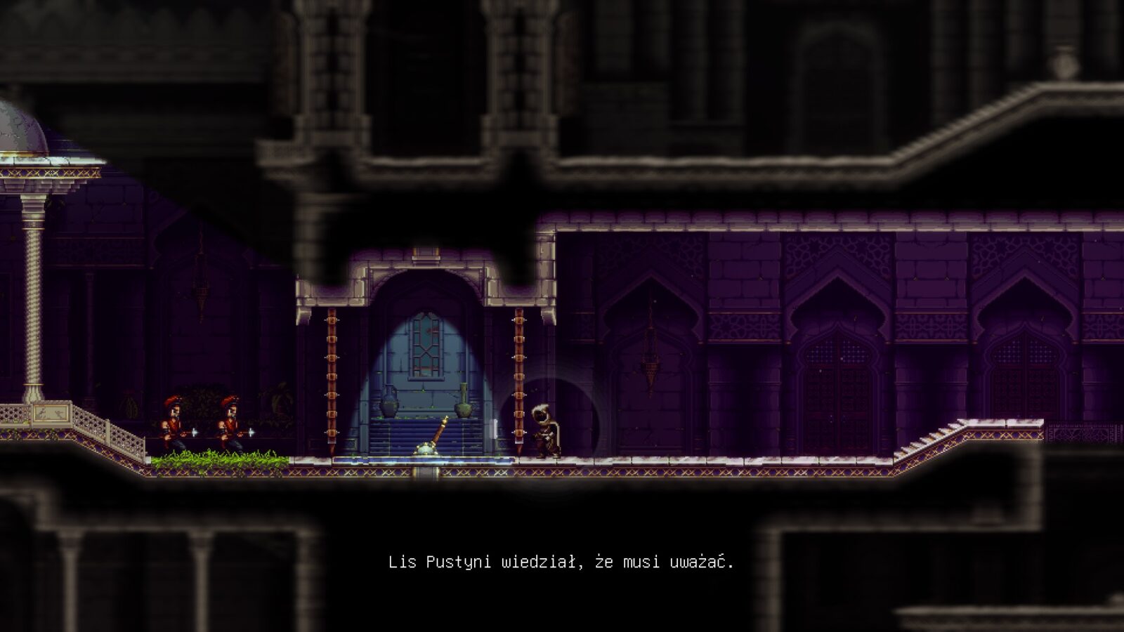 Mówiąc krótko: The Siege and the Sandfox to platformówka 2D, osadzona w fikcyjnym, bliskowschodnim królestwie Karimanu – a mówiąc ściślej, głównie z podziemiach pod nim. Nasze zadanie do odkrywanie kolejnych lokacji, wyszukiwanie przejść oraz unikanie zetknięcia ze strażnikami oraz nieprzyjaznymi postaciami. Sterowany przez gracza al’Fenak, Lis Pustyni, ma przed sobą do pokonania kilometry tuneli, komnat, korytarzy i podziemi.