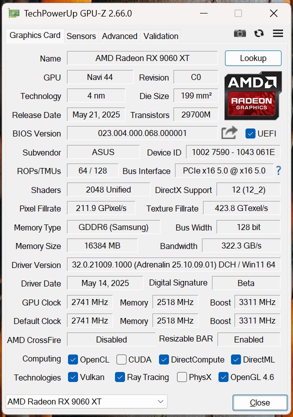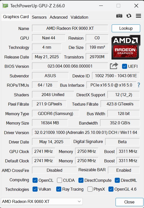 - AMD Radeon RX 9060 XT: Adrenalin 25.10.09.01