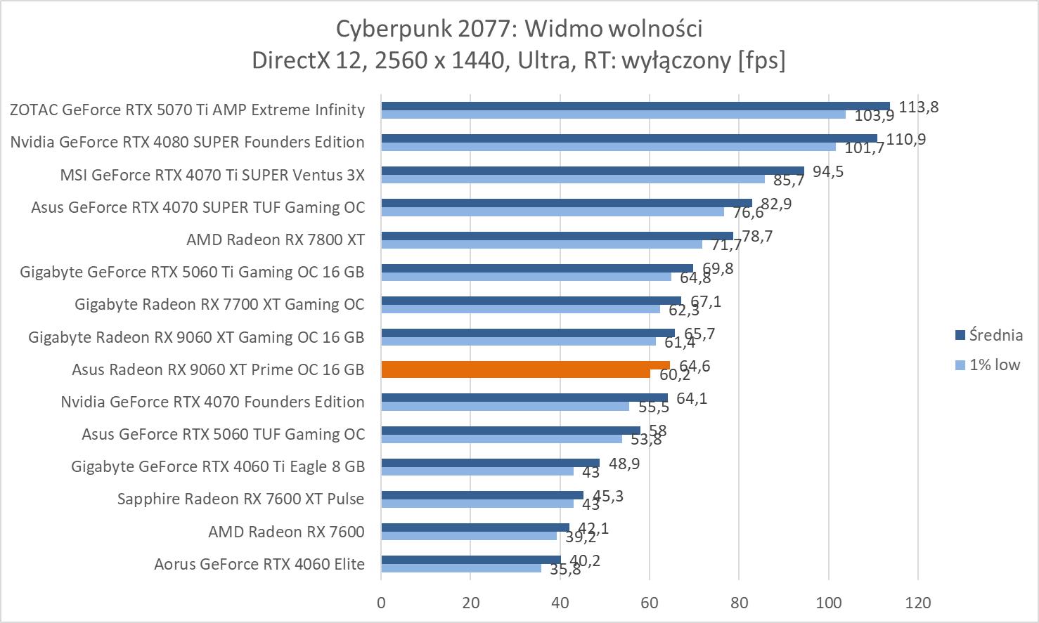 Test Asus Radeon RX 9060 XT Prime OC 16 GB – podsumowanie