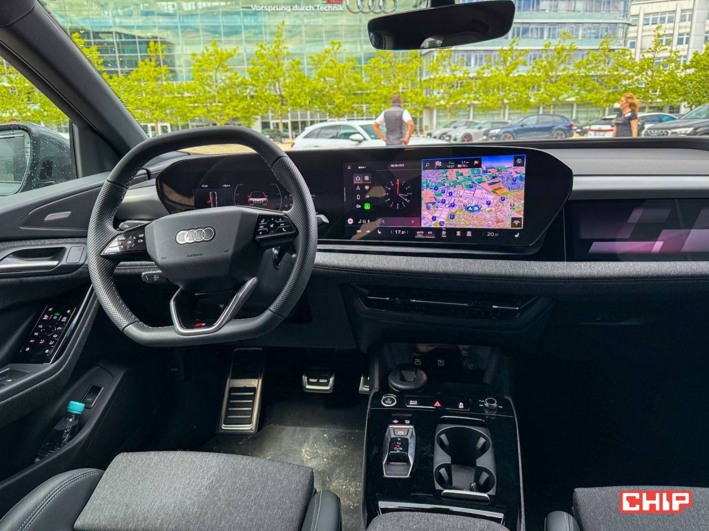 Q6 Sportback e-tron to w pełni elektryczny model, który łączy sportowy design z funkcjonalnością SUV-a. Nie jest to całkowita nowość, bo samochód jest dostępny na rynku od kilku miesięcy, ale pojawił się również w Ingolstadt — i to właśnie nim miałem okazję jeździć, a nie A5. Q6 Sportback e-tron został zbudowany na platformie Premium Platform Electric (PPE), a do tego oferuje różne warianty napędowe, dwa rozmiary akumulatorów i solidny zasięg, a do tego jest przepełniony nowoczesnymi technologiami.