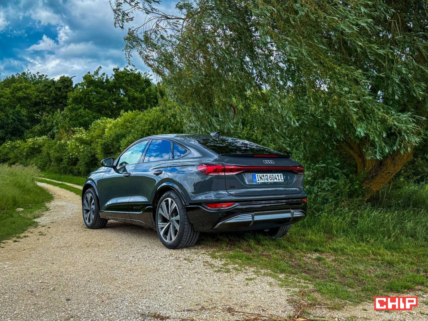 Maksymalna prędkość wynosi 210 km/h (230 km/h dla SQ6). Zużycie energii waha się od 15,4 do 18,9 kWh/100 km, a emisja CO2 to 0 g/km. Jak już wspomniałem, miałem okazję jeździć Q6 Sportback e-tron Quattro — i zużycie energii faktycznie oscylowało w okolicach 18 kWh/100 km przy jeździe mieszanej (start i finisz w mieście, reszta trasy na drogach z ograniczeniem do 90 km/h). Sam komfort prowadzenia jednak jest niezwykle wysoki; Audi doskonale wie, co robi, i to po prostu czuć. Samochód, pomimo rozmiarów, jest odpowiednio dynamiczny, jak na elektryka przystało. Różne rozmiary silników przedniego i tylnego w wariantach Quattro zapewniają rozkład momentu obrotowego z przewagą tylnej osi, co zwiększa zwinność. Nowa kinematyka przedniej osi, z wahaczami wleczonymi przed drążkami kierowniczymi, poprawia reakcję na skręt i dynamikę jazdy.