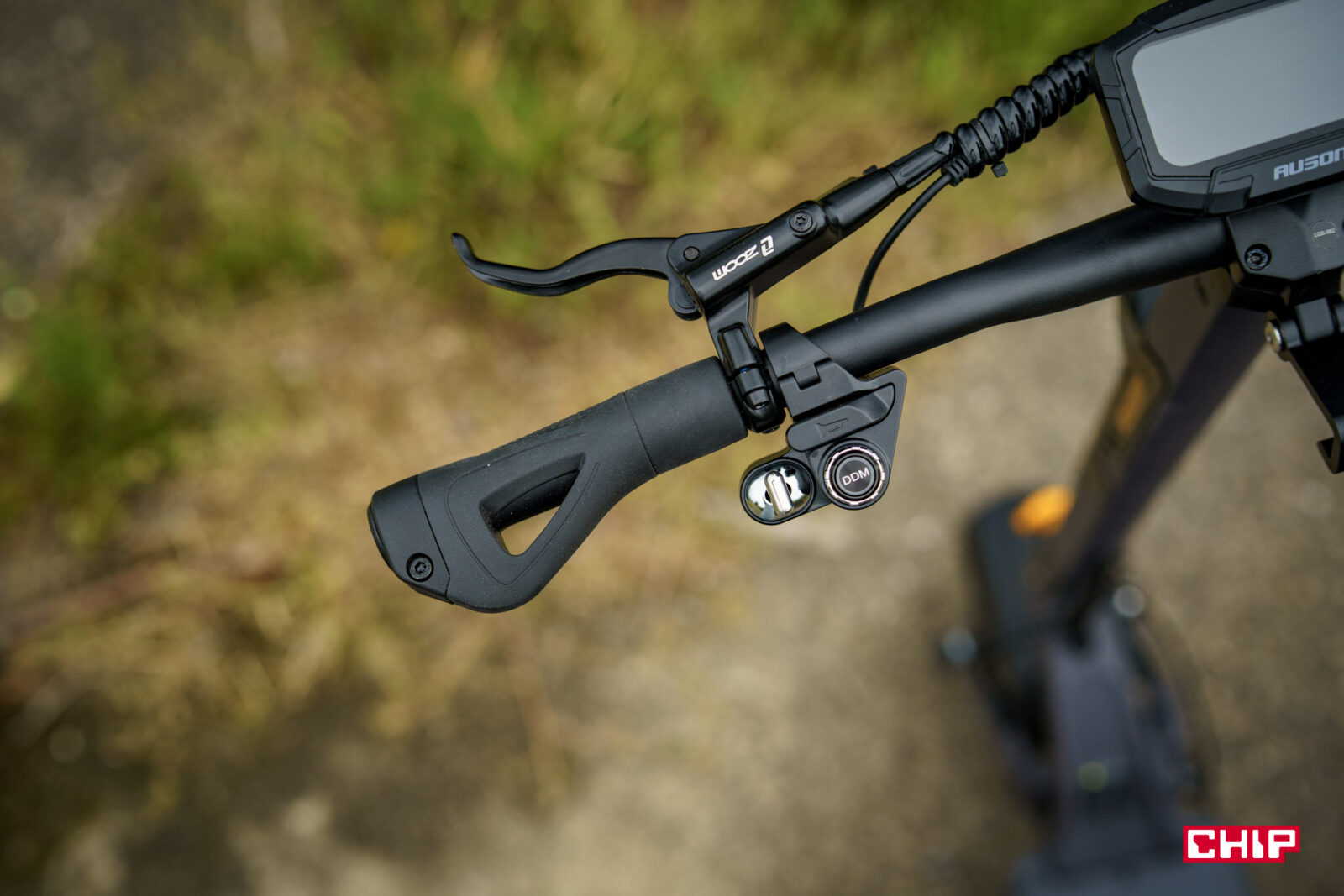 Ausom DT 2 Pro pozwala na pewną personalizację elementów umieszczonych na kierownicy. Samą kierownicę możnemy dowolnie obrócić, zmieniając przez to nachylenie rączek. Co warto dopasować do naszego wzrostu.