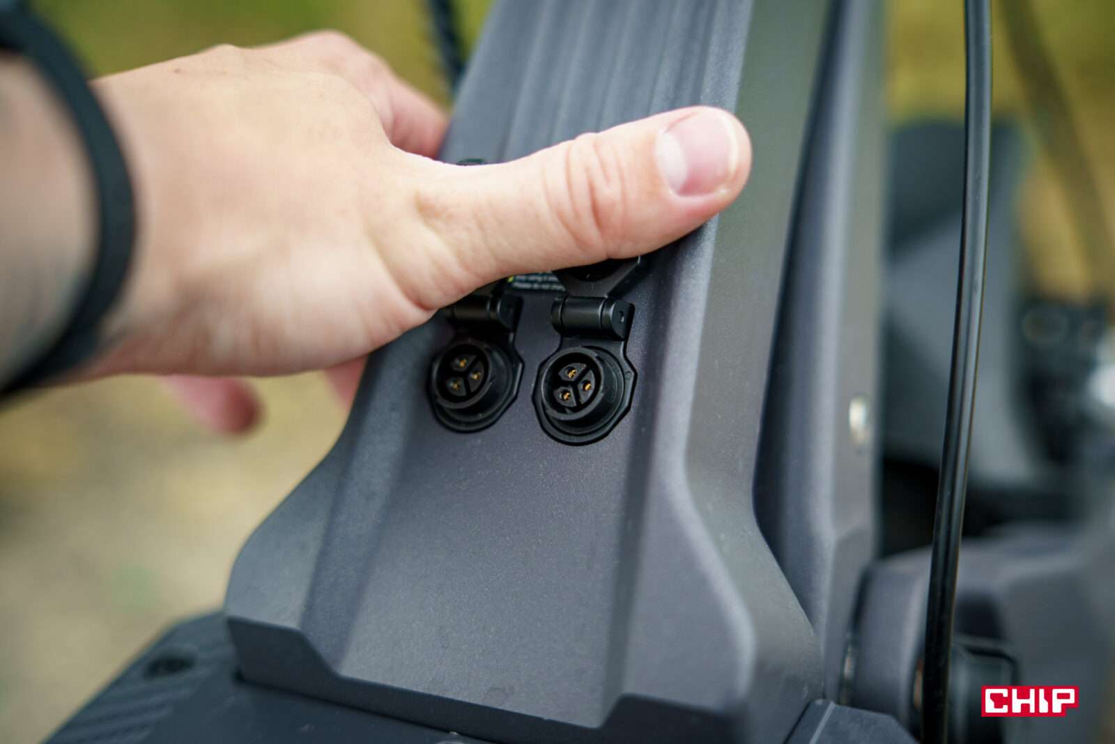 Do dyspozycji mamy dwa gniazda ładowania, ale w zestawie jest tylko jedna ładowarka. Czas ładowania akumulatora do pełna to ok 12 godzin, a jeśli dokupimy druga ładowarkę to skracamy ten czas do 6 godzin. Dodatkowa ładowarka kosztuje 100 zł, więc nie jest to zła inwestycja.