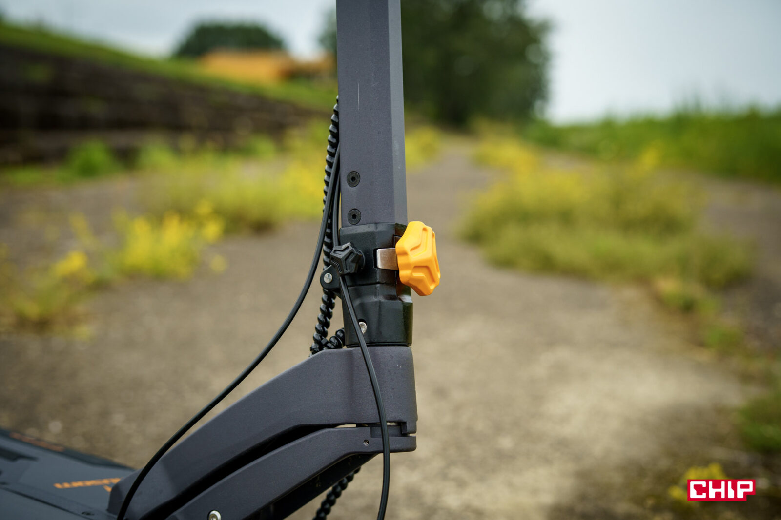 Trochę elektrycznych hulajnóg w życiu widziałem, ale żadna nie była nawet blisko modelu Ausom DT2 Pro pod względem solidności. Podest jest wykonany z tworzywa sztucznego, podobnie błotniki, ale cała reszta to już bardzo grube, kute aluminium. Wliczając w to wszystkie elementy mocowania wokół kół.