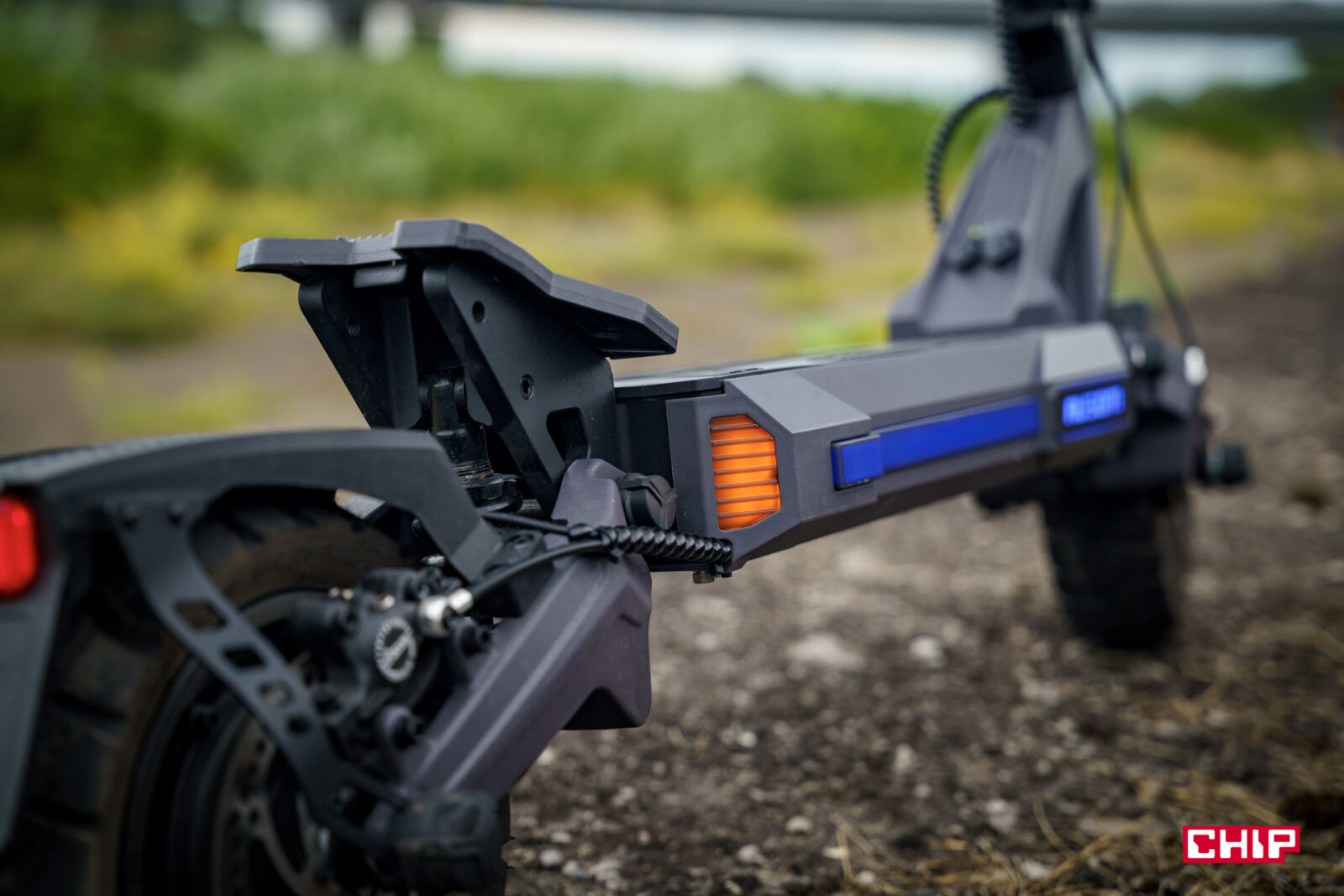 Co innego, jeśli włączymy drugi silnik. Tutaj, podobnie jak w przypadku hamulców, trzeba się skupić na tym, co robimy. Tę moc dosłownie czuć pod nami. To nie jest zabawka, tu trzeba stać pewnie i dobrze dociskać podest, najlepiej stojąc jedną nogą na wystającej części podestu z tyłu, bo nawet w trybie Eco Ausom DT 2 Pro wystrzeliwuje do przodu jak z procy. Na dobrą sprawę, podczas codziennej jazdy drugi silnik przydaje się głównie do sprawnego wyprzedzenia.